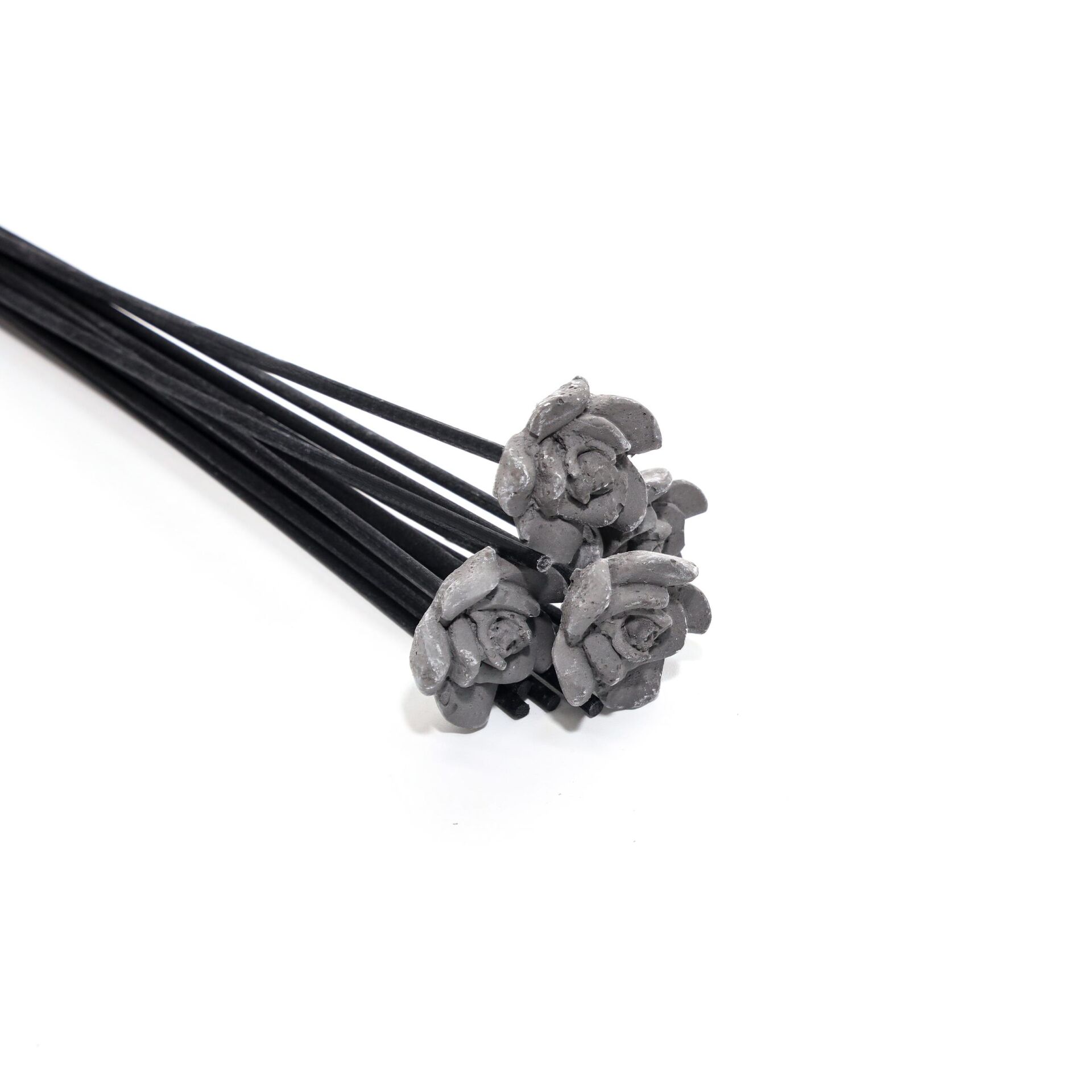 4 ADET KAMIŞIN ÜZERİNDE GRİ SERAMİK ÇİÇEK TAŞI MEVCUTTUR.