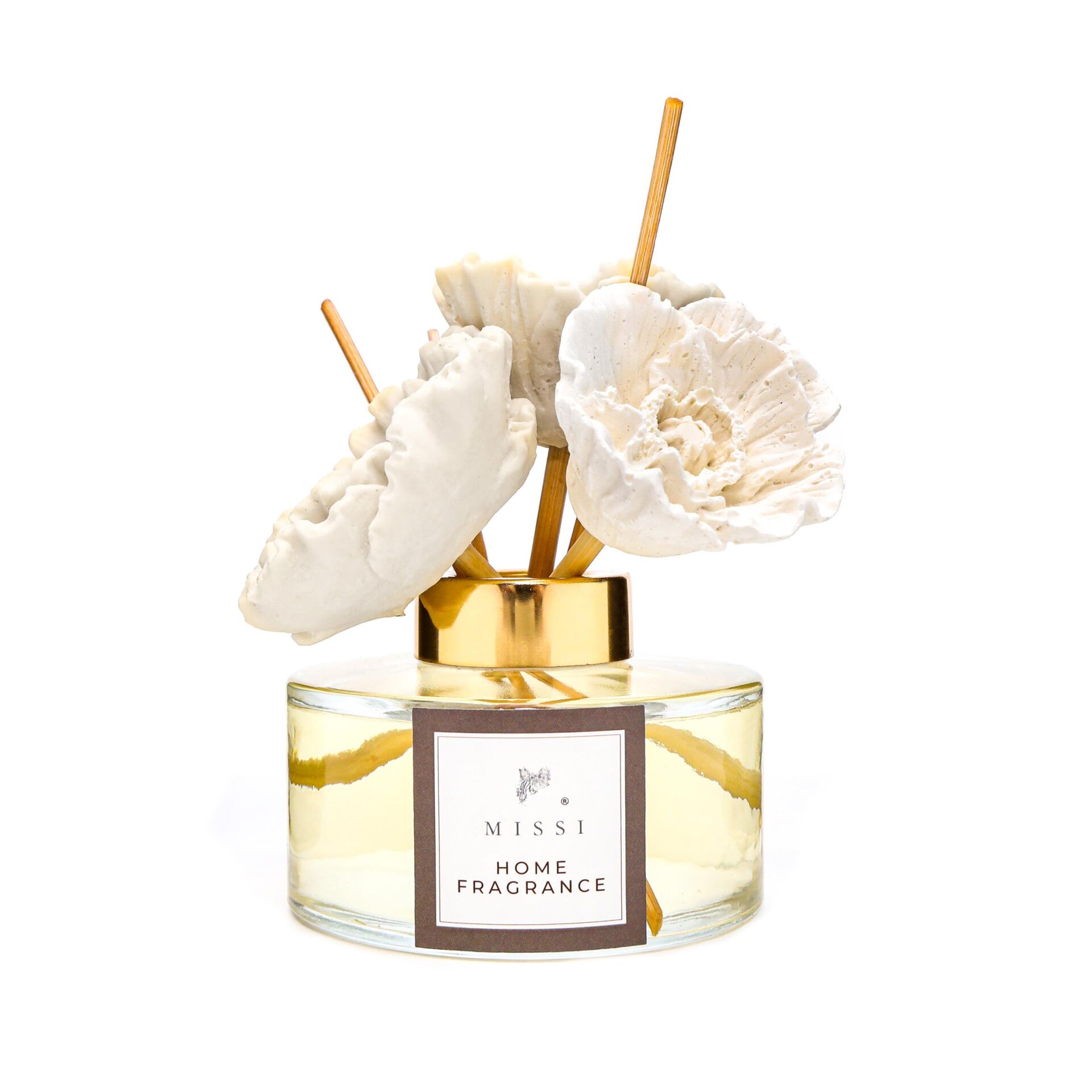 3 adet bambu kamışın ucunda çiçek seramik taşı mevcuttur. Seramik taşın koku emme özelliği mevcuttur.