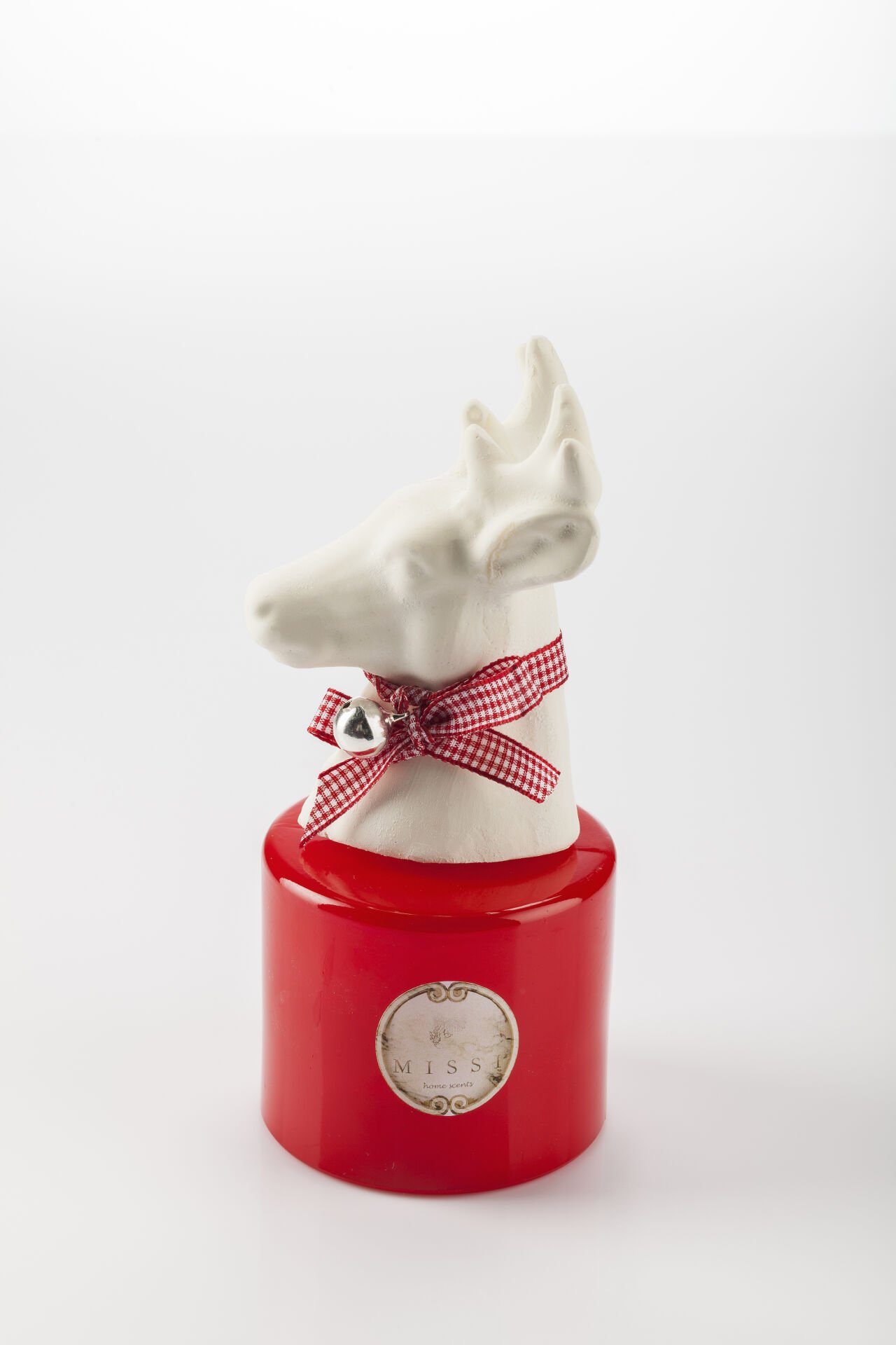 200 CC KIRMIZI PARLAK CAM ŞİŞE, GEYİK SERAMİK TAŞLI SPICY ORANGE ODA KOKUSU.