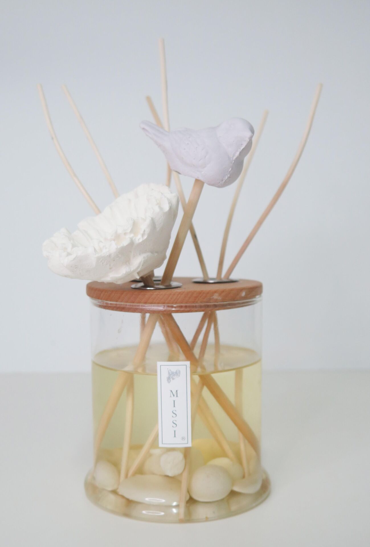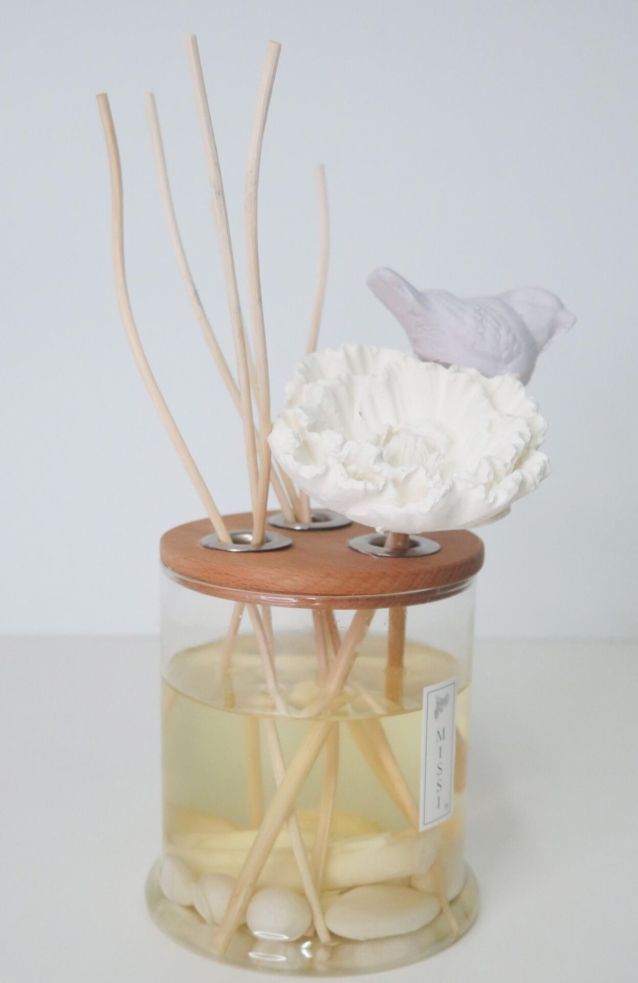 250 ml Dekorlu Masif Ahşap Kapaklı Yuvarlak Şişe Yasemin Sandal Oda Kokusu