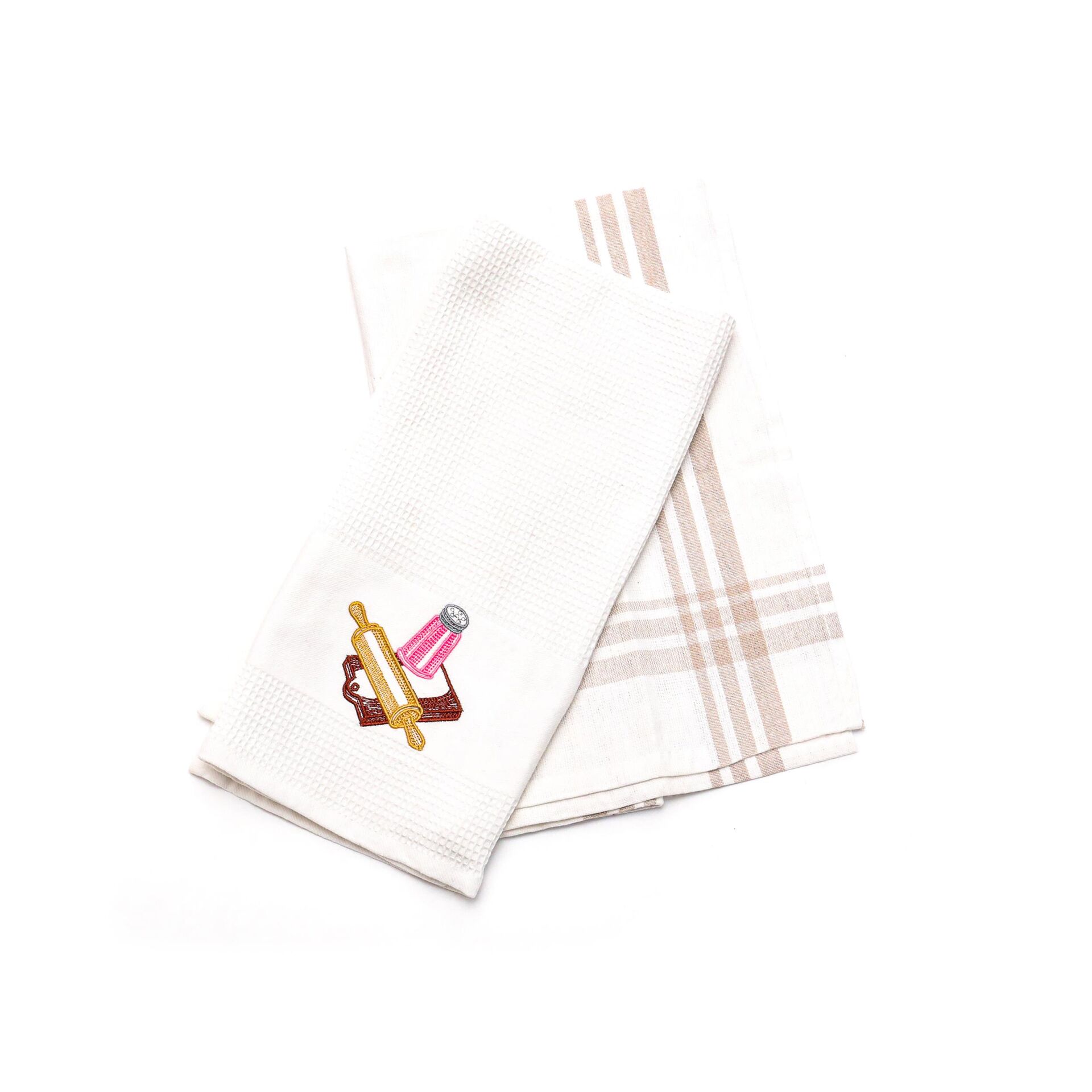 1 ADET BÜYÜK TUZLUK NAKIŞLI KURULAMA BEZİ- 1 ADET EKRU BEJ ÇİZGİLİ PİKE KURULAMA BEZİORTALAMA 50X70 CM%100 PAMUKKURDELA PAKETLİ