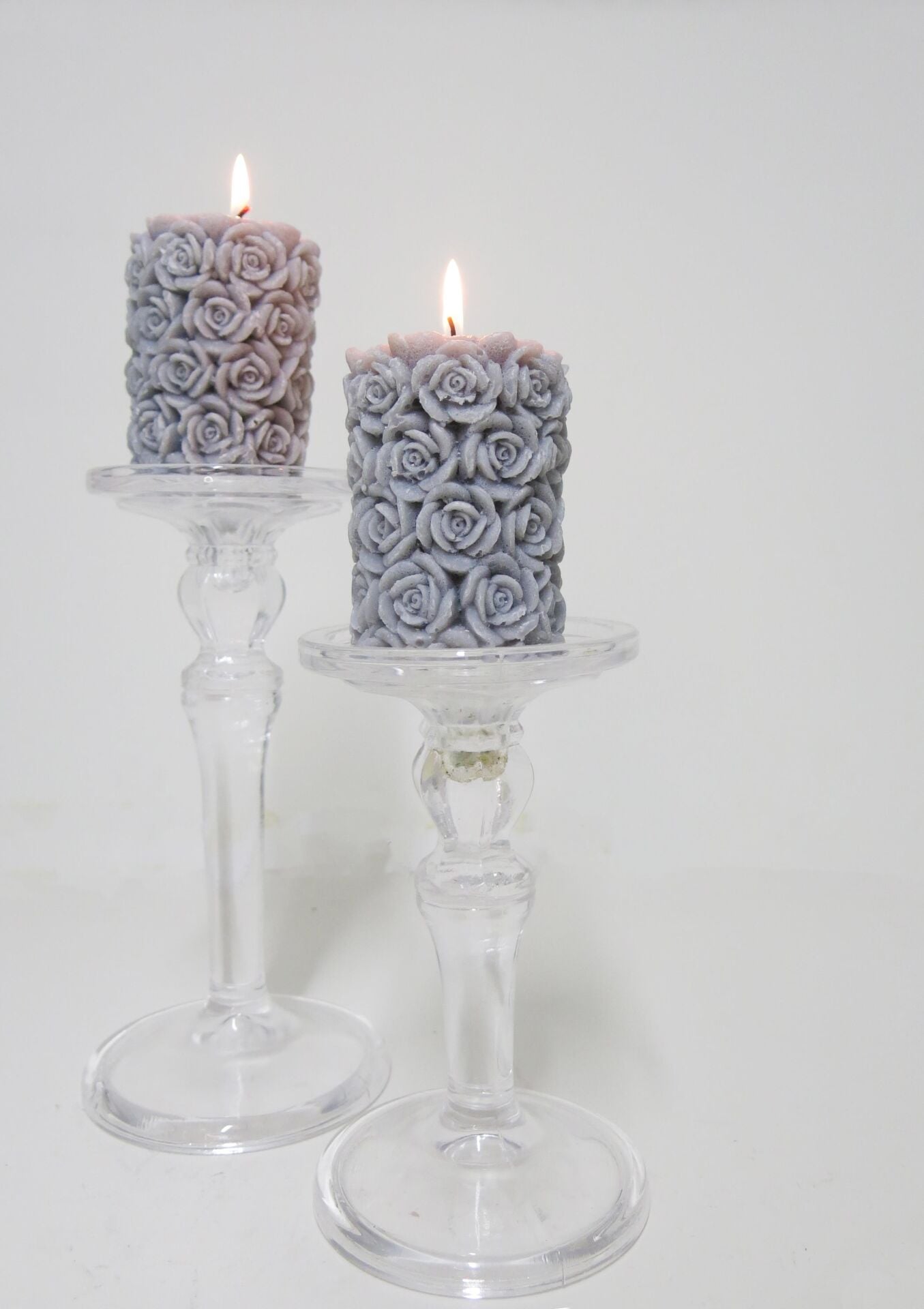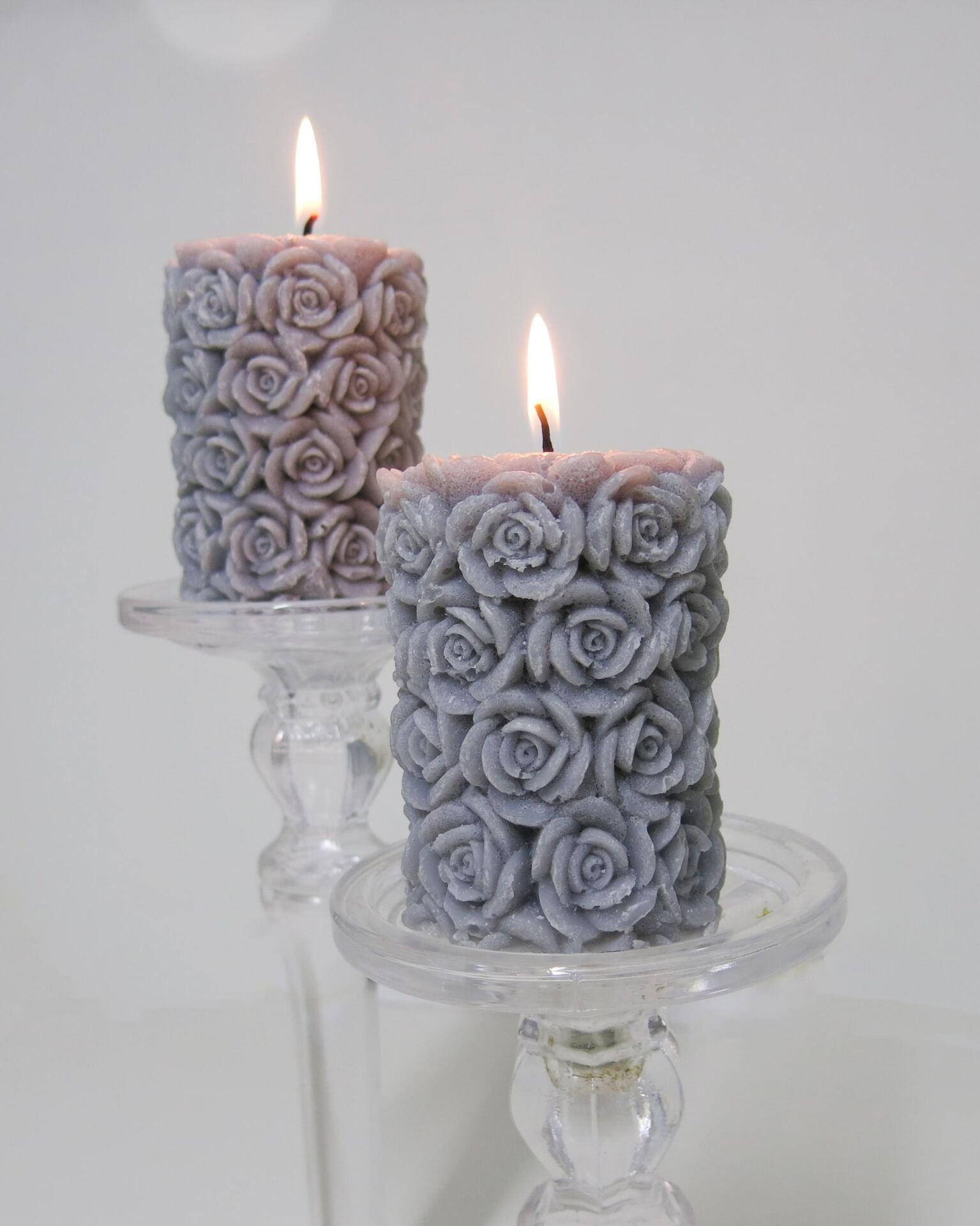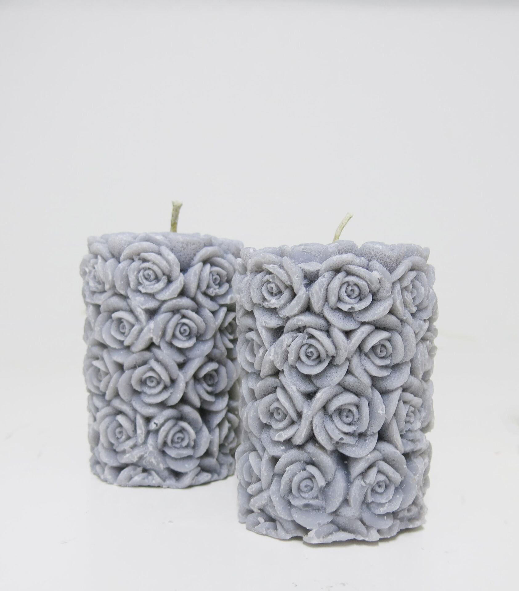 2Lİ GRİ GÜL KABARTMALI 7X8 MUM SETİ