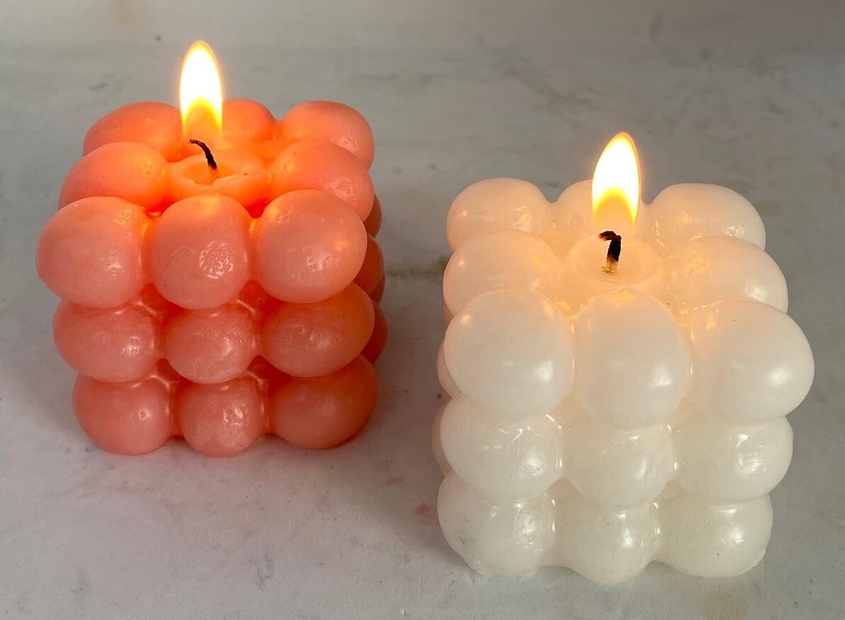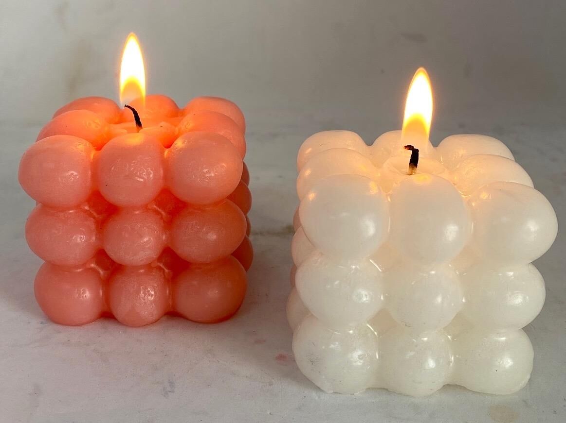ÖZEL EL YAPIMI BUBBLE MUM SETİ PEMBE-EKRU ÇAP: 6,5 CM