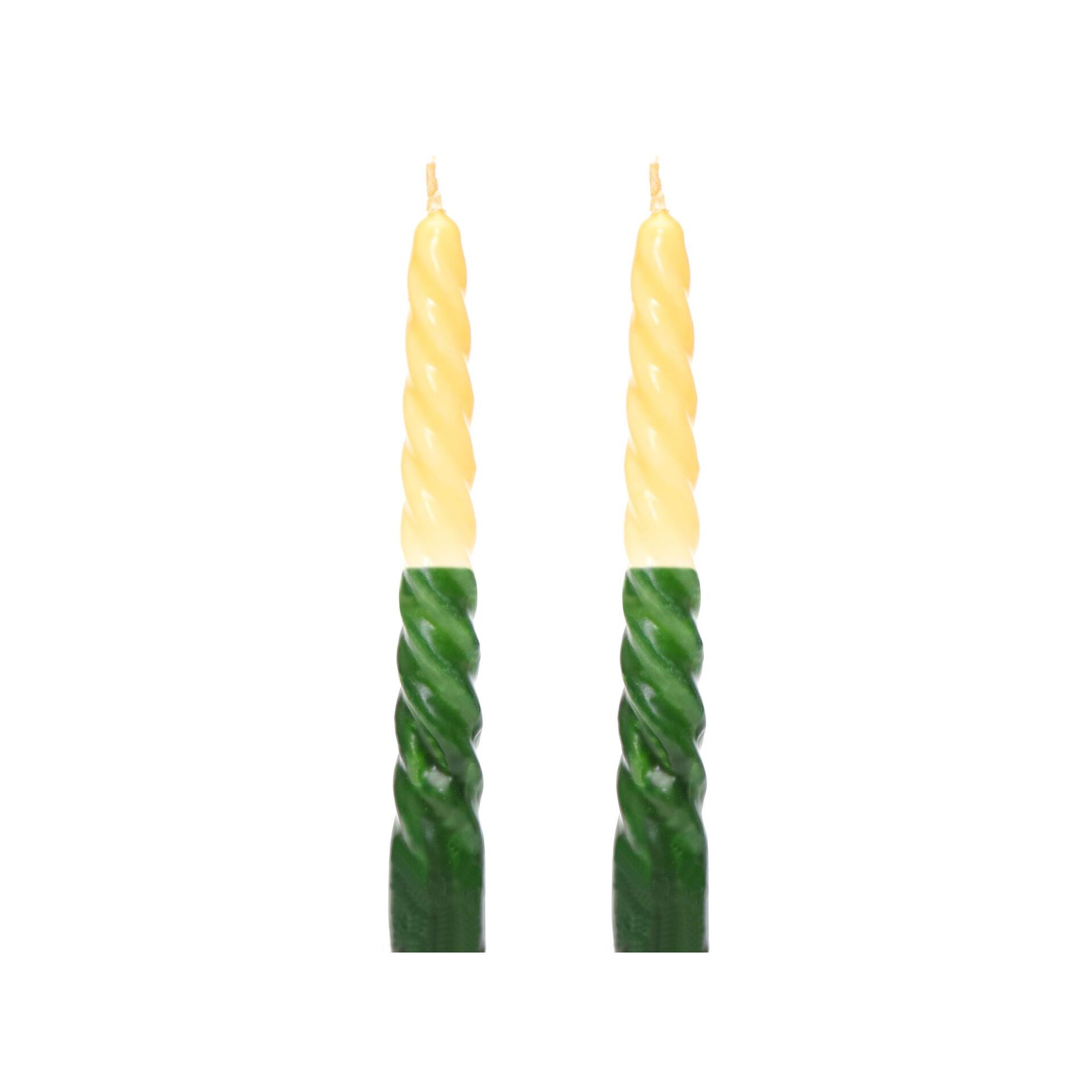 2Lİ SARI-YEŞİL BURGULU ŞAMDAN MUM SETİ