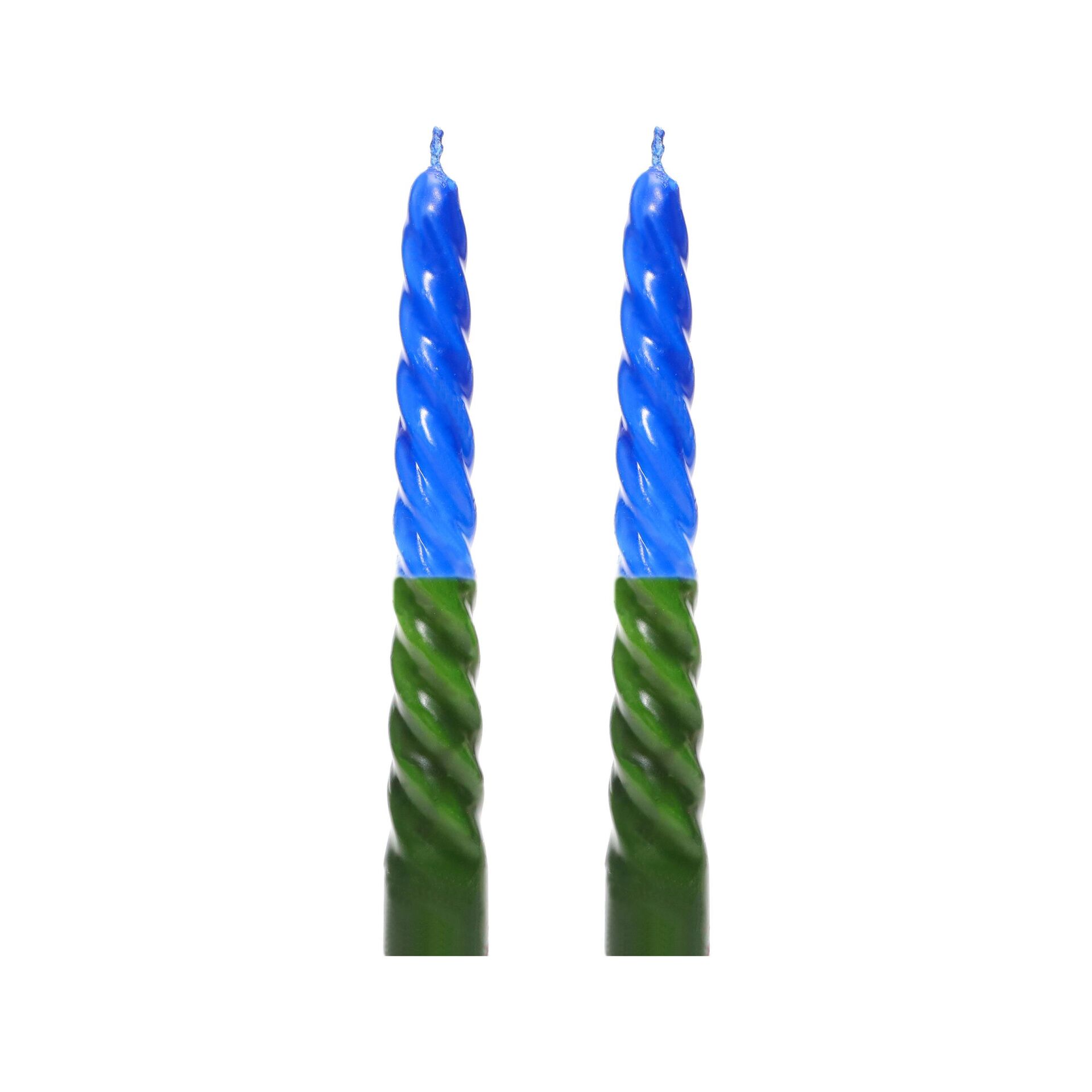2'li Mavi-Yeşil Burgulu Şamdan Mum Seti