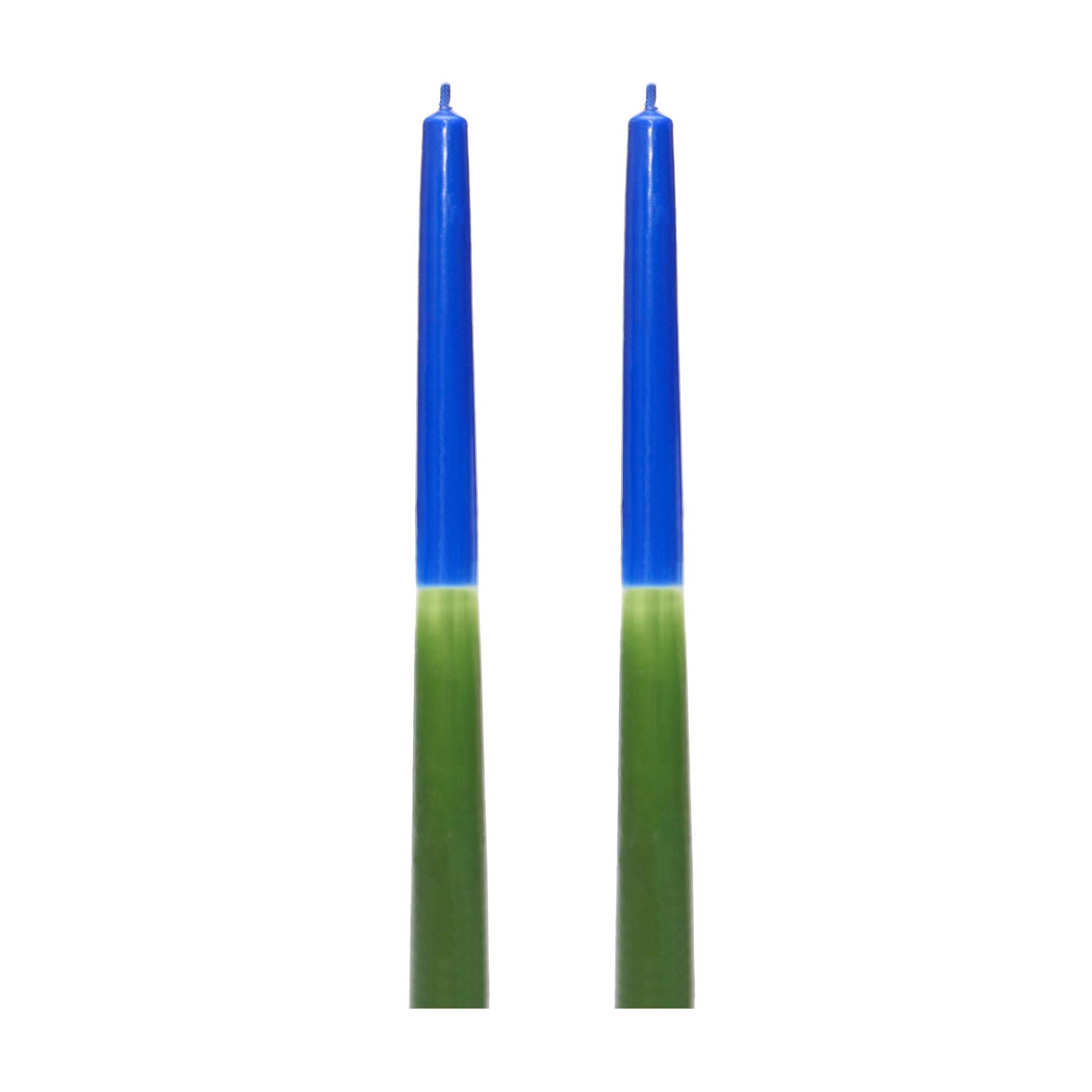 2'li Yeşil-Mavi Konik Şamdan Mum Seti