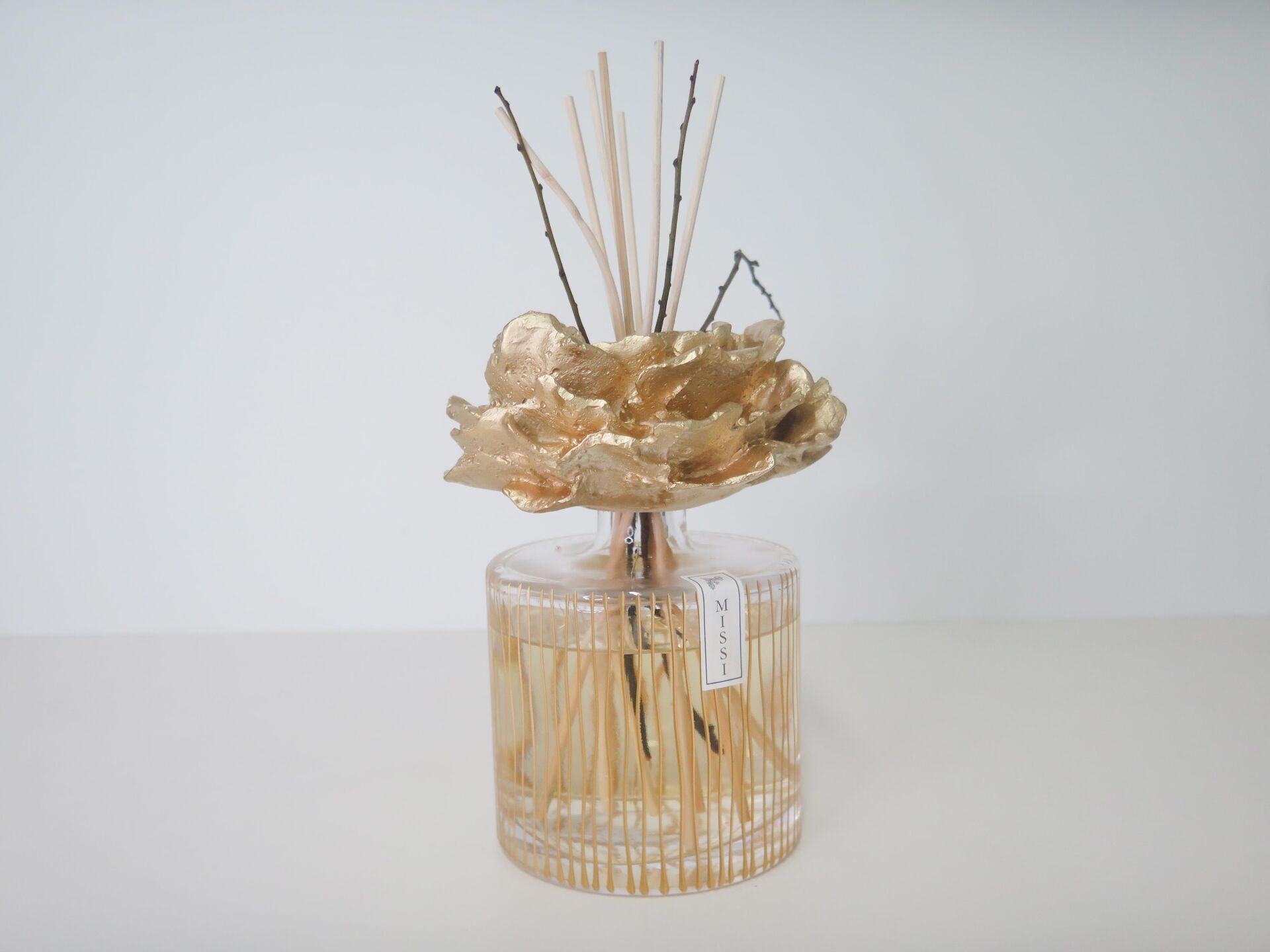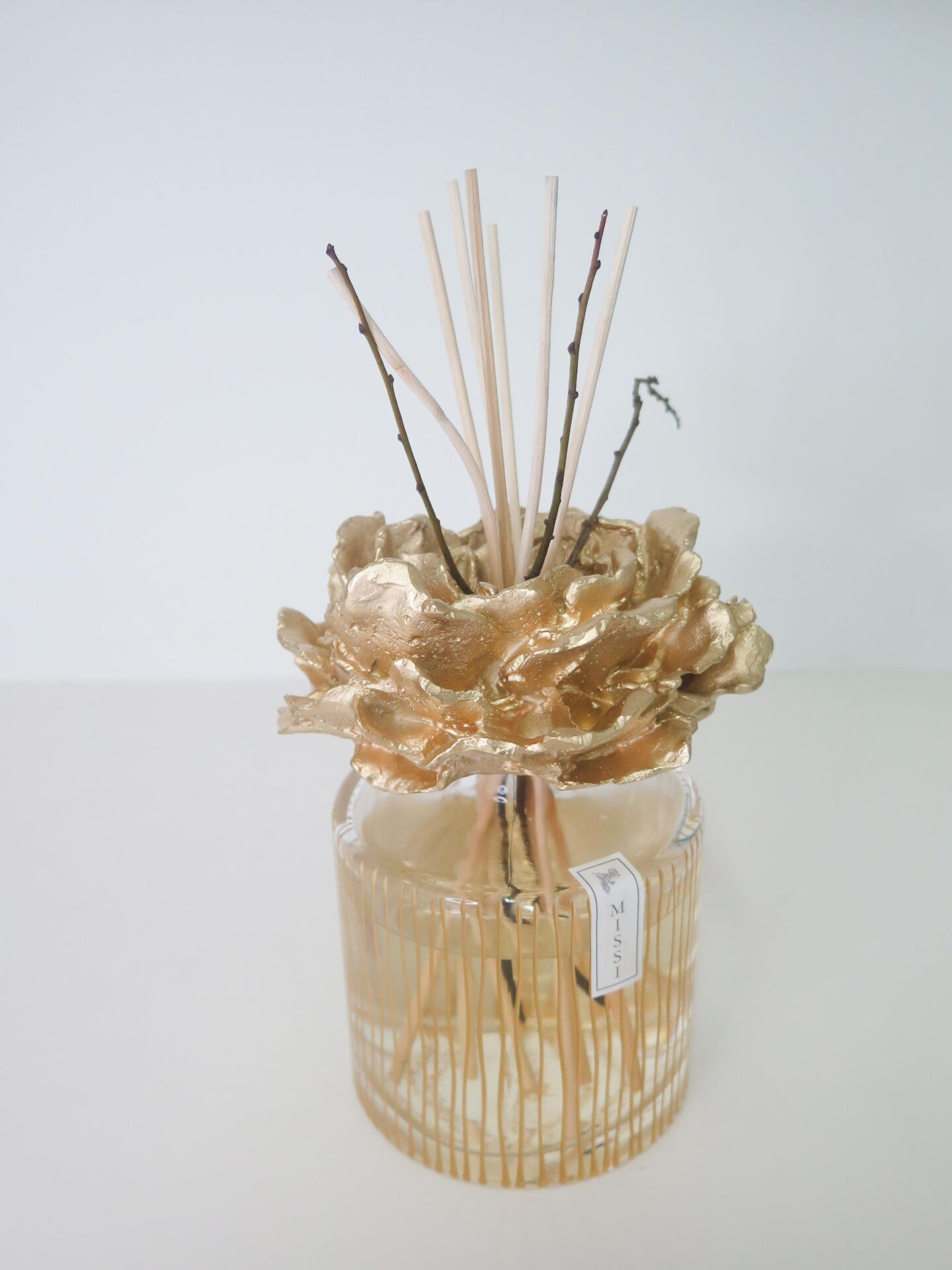 500 CC GOLD ÇİZGİLİ KESME CAM ŞİŞE GOLD TAŞLI DARK AMBER ODA KOKUSU
