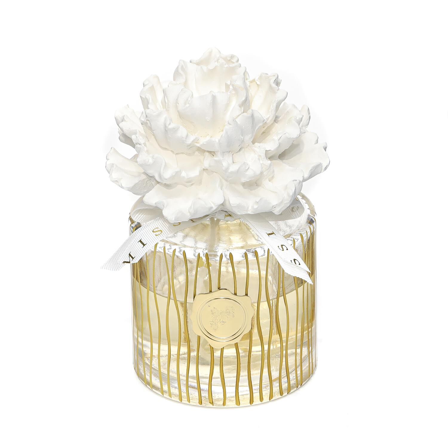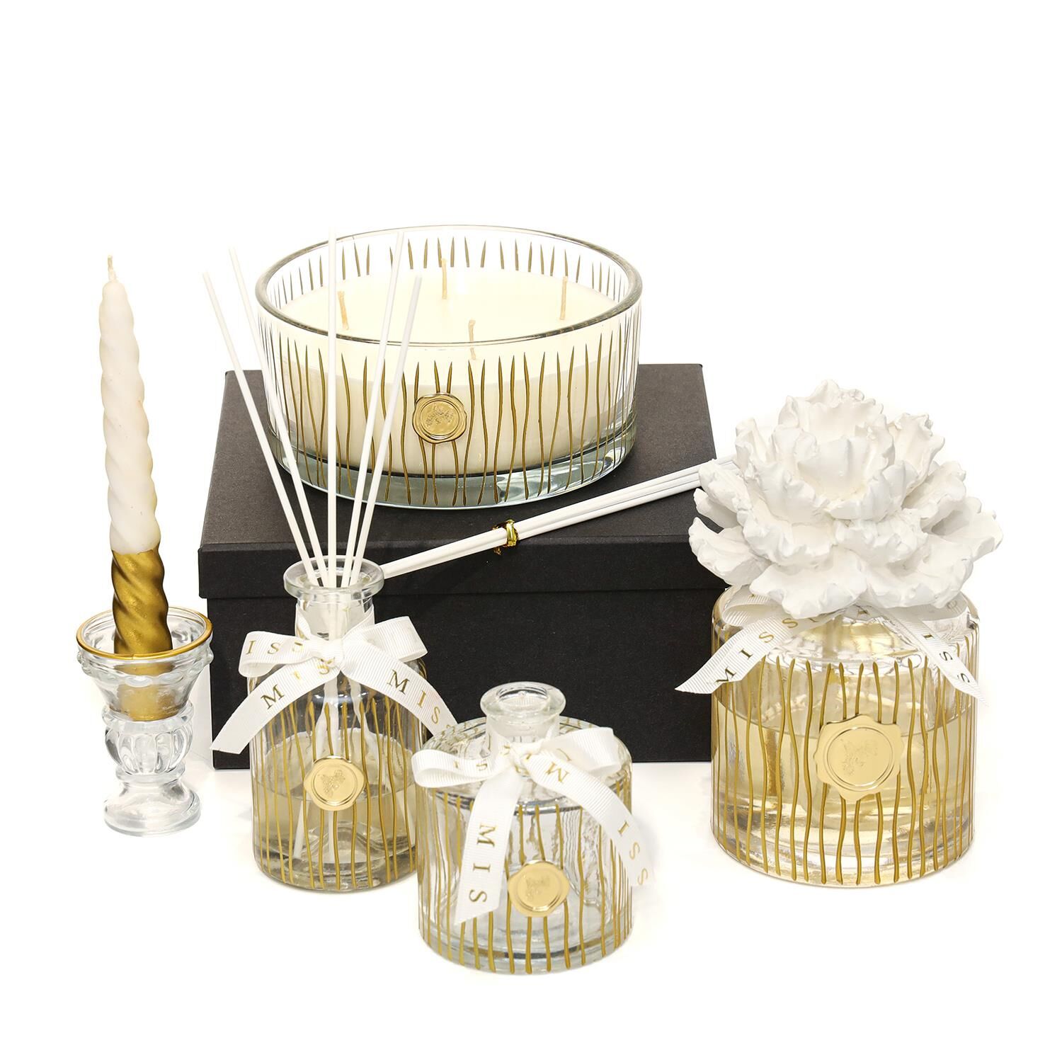 500 ml Özel El Kesimi Gold Çizgili Cam Seramik Çiçek Taşlı Oud Vanilya Oda Kokusu (Dekoratif Sıvama Kutulu)