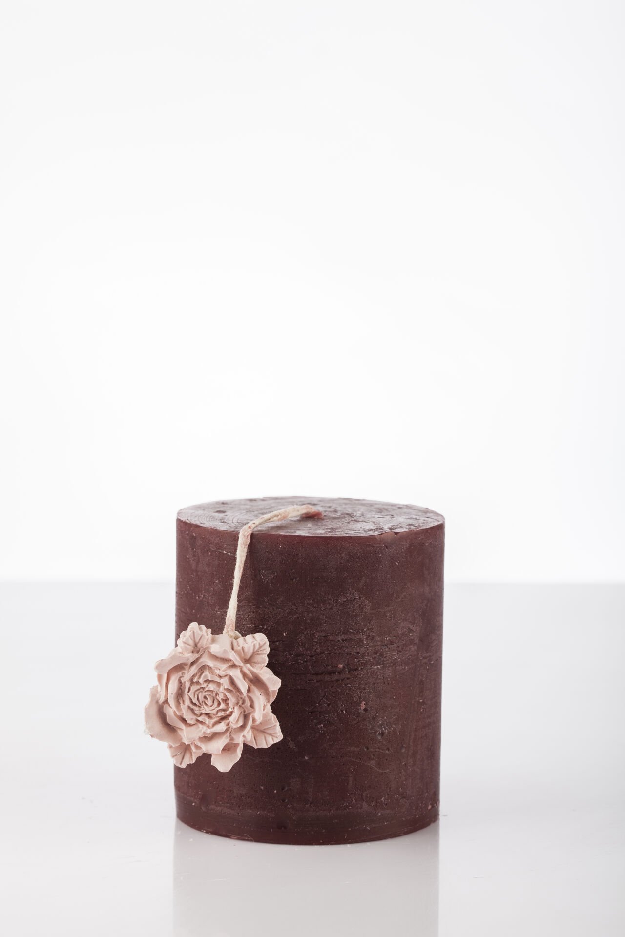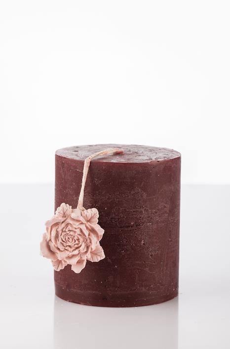 7X8 CM GÜL TAŞLI BORDO SİLİNDİR MUM.