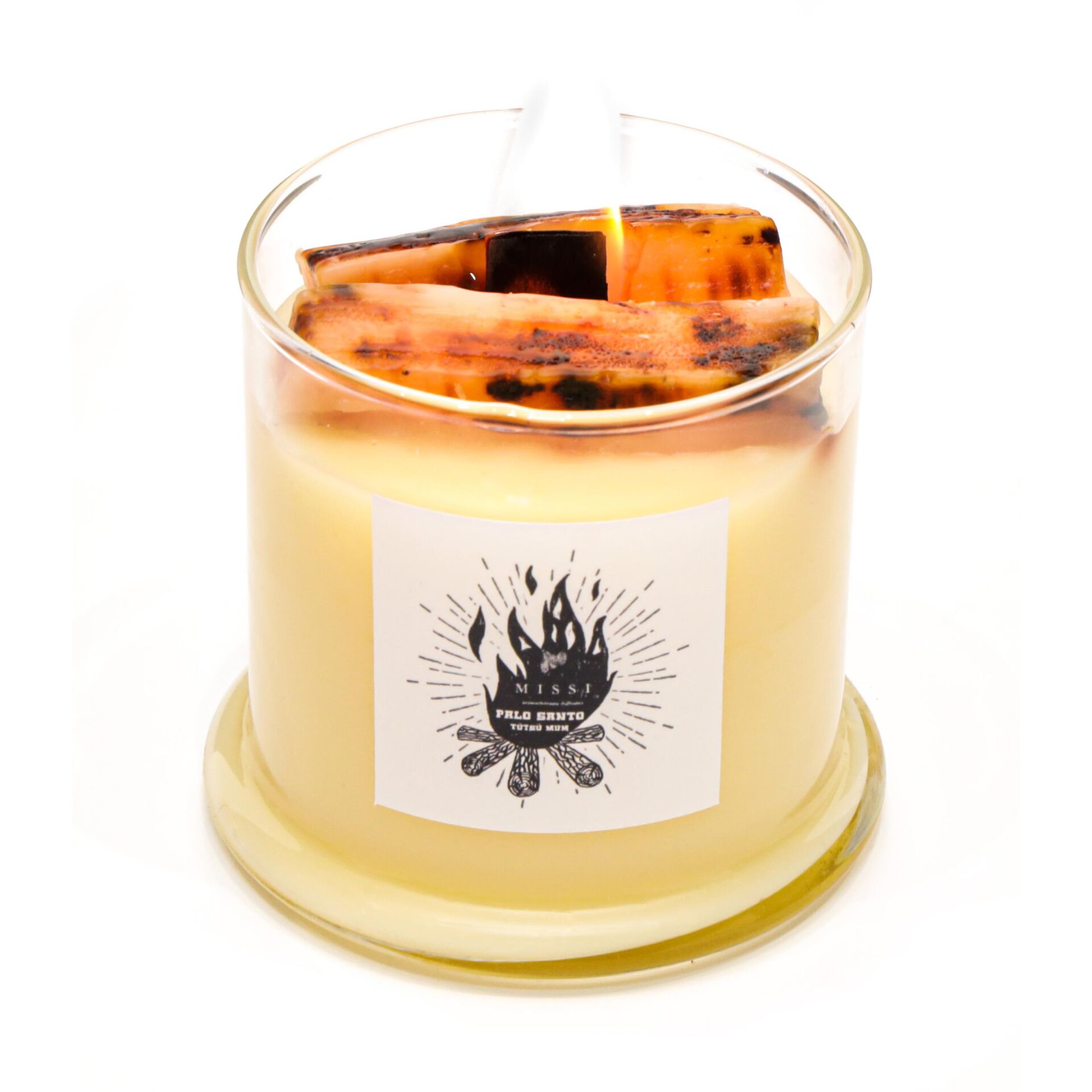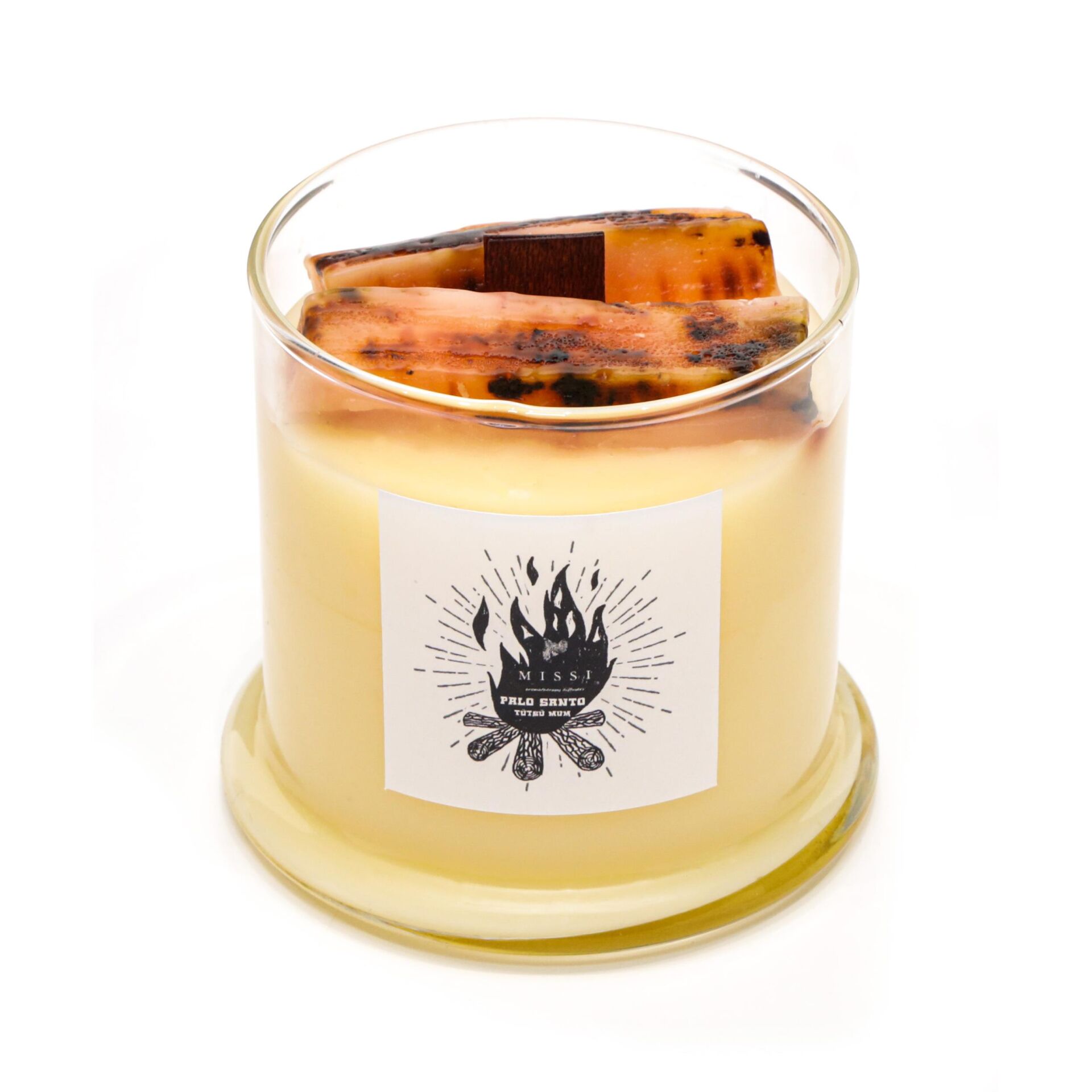 Üfleme Cam Ahşap Fitilli Palo Santo Vegan Mum(140 gr)
