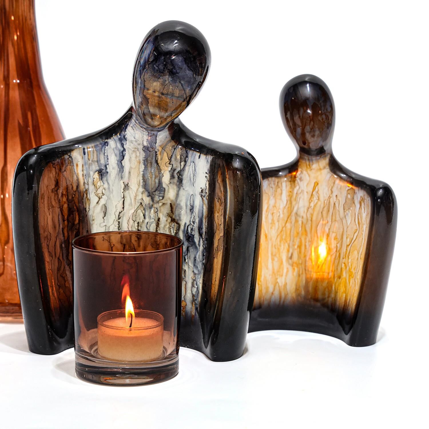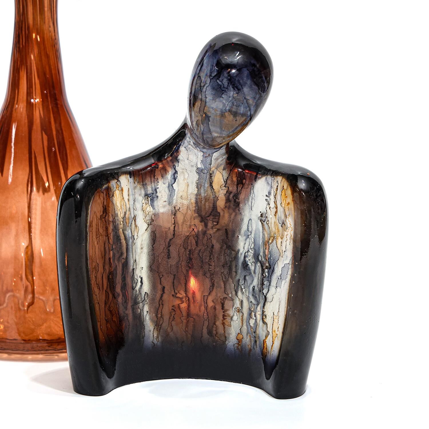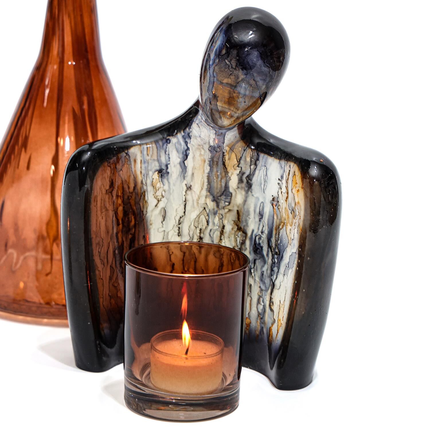 Reçineden dökülmüş,minimal insan formunu çağrıştıran heykelsi bir tasarım.Parlak siyah yüzeyiyle hem ışığı hem gölgeyi içine alarak mekanda güçlü bir varlık oluşturur.Her biri el işçiliğiyle hazırlanmış,modern sanatı dingin ve zamansız yorumunu yansıtır.