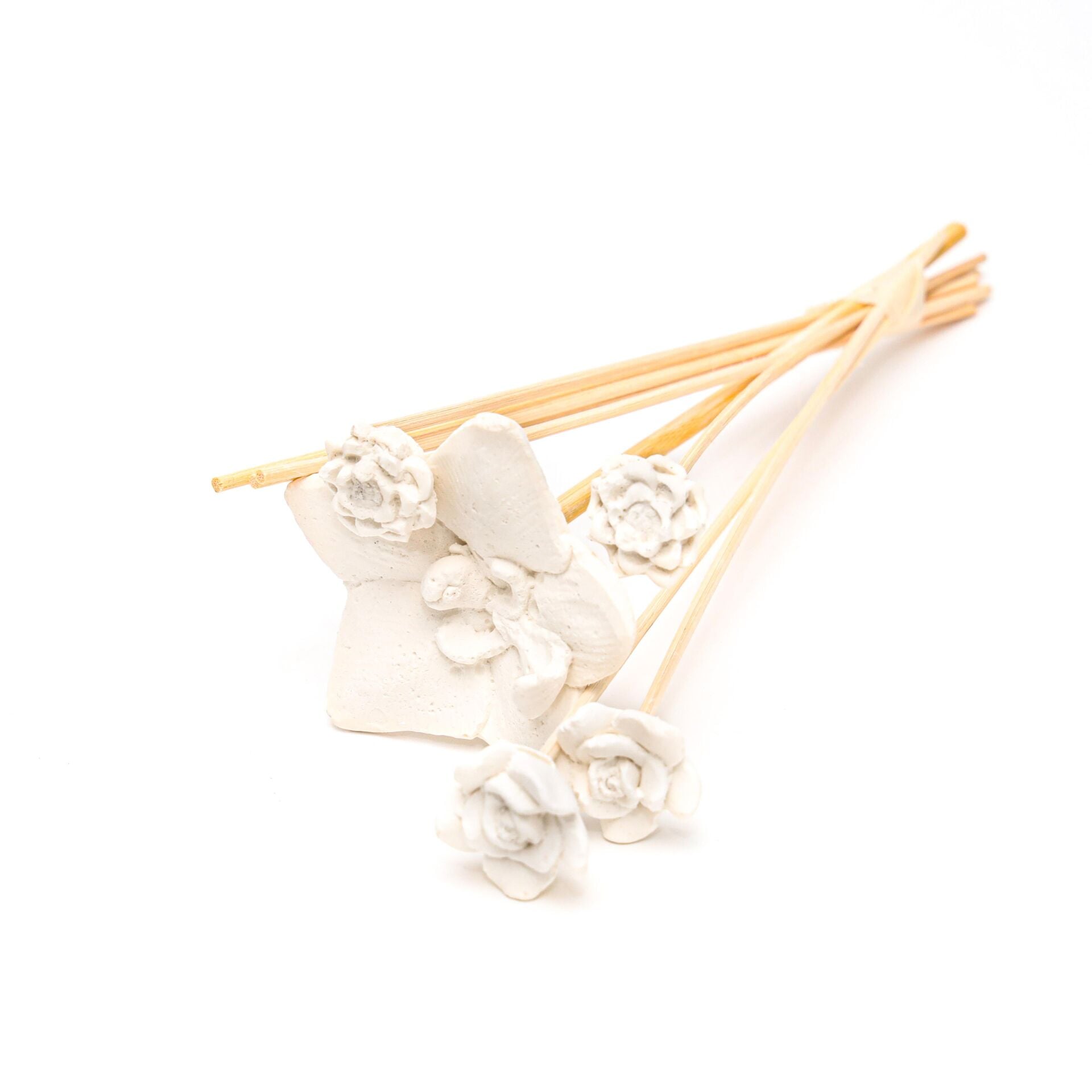 Beyaz Karışık Çiçek Taşlı 10'lu Doğal Bambu Kamış Seti