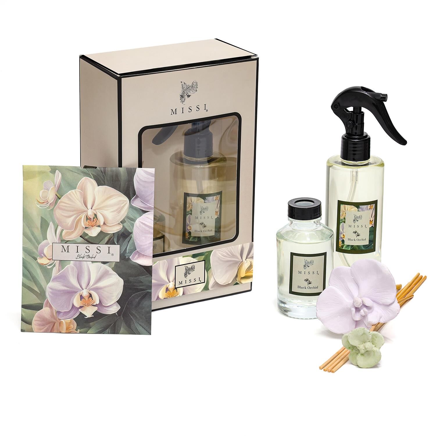 Özel Kutu içerisinde Black Orchid Hediye Seti (Oda kokusu-Oda spreyi-Kokulu zarf)