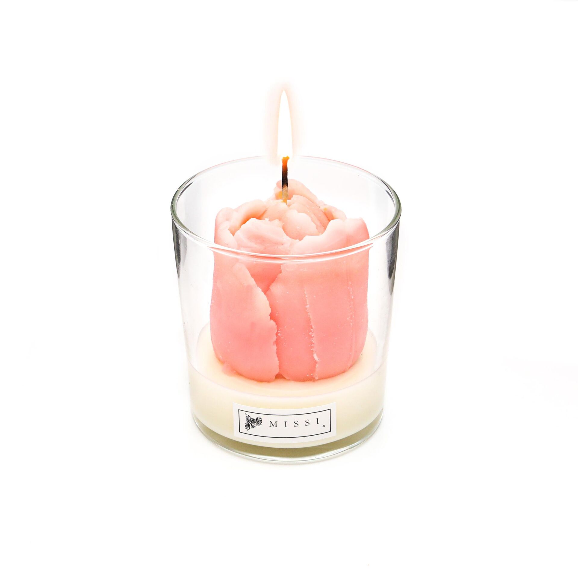 Cam İçi Ottoman Garden Kokulu Pembe Lale Vegan Mum
