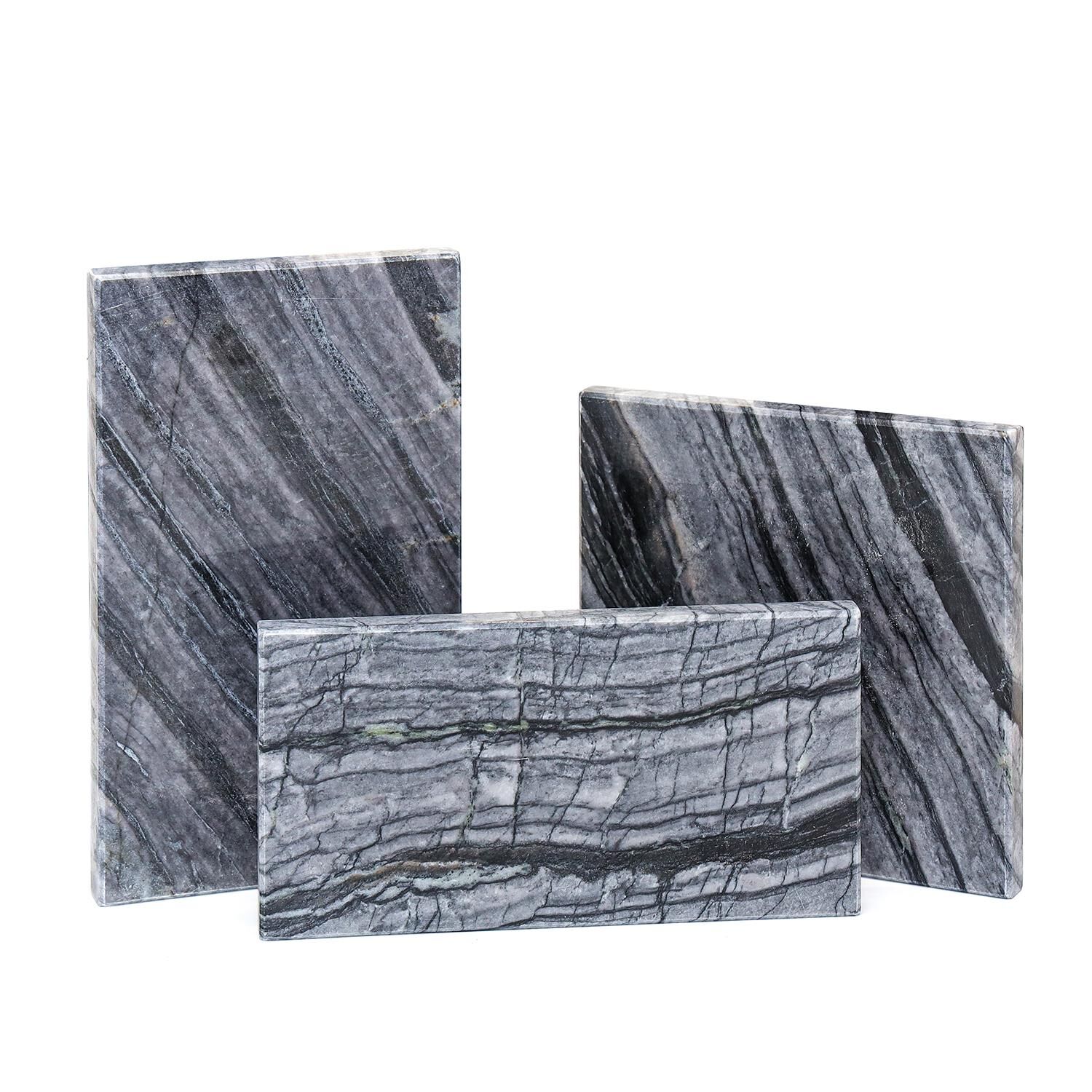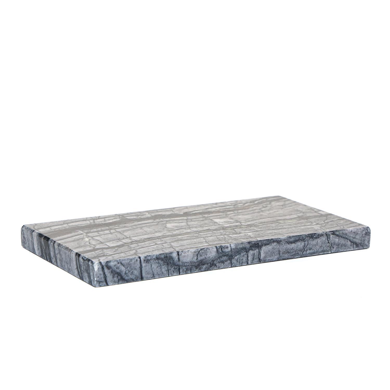 Tek parça halinde sunulan bu mermer tabak, dekoratif kullanım için idealdir; Doğal mermer materyaliyle hem dayanıklılık hem de estetik bir görünüm sunar; Antrasit rengi ve pah kesim tasarımı ile modern ve şık bir dekorasyon unsuru olarak öne çıkar; Dikdörtgen şekli sayesinde çeşitli objelerle kolayca uyum sağlar ve mekanınıza sofistike bir dokunuş katar;