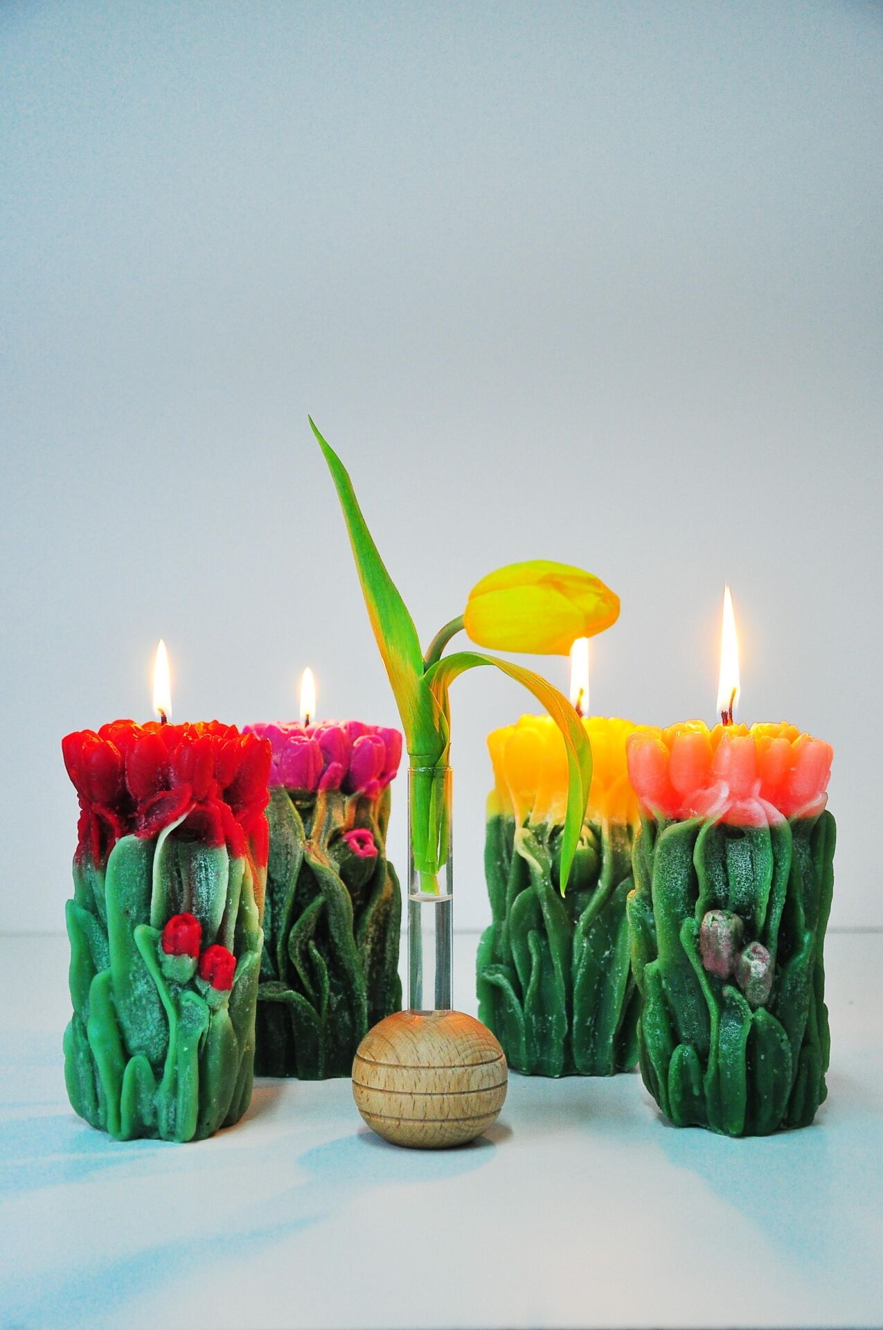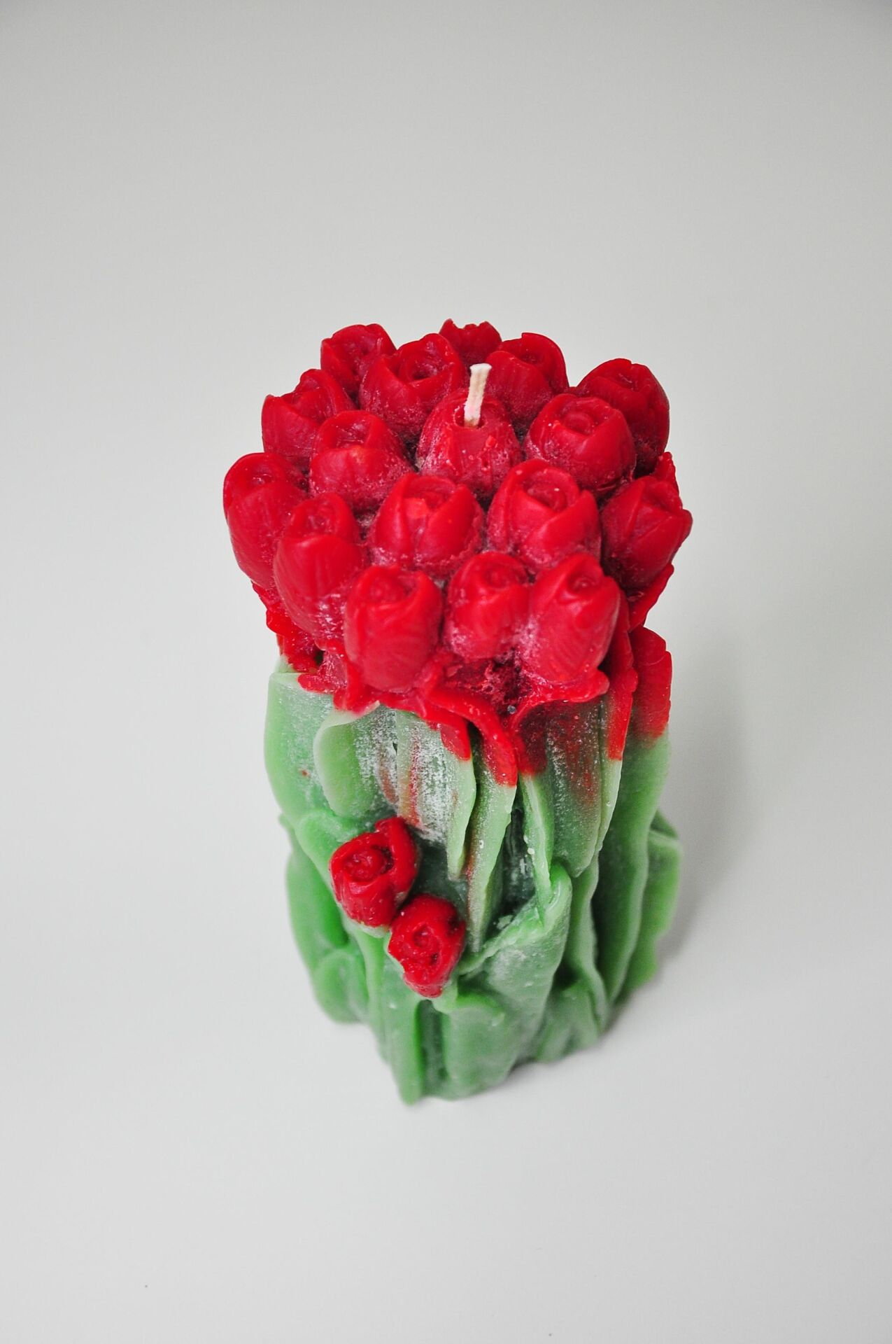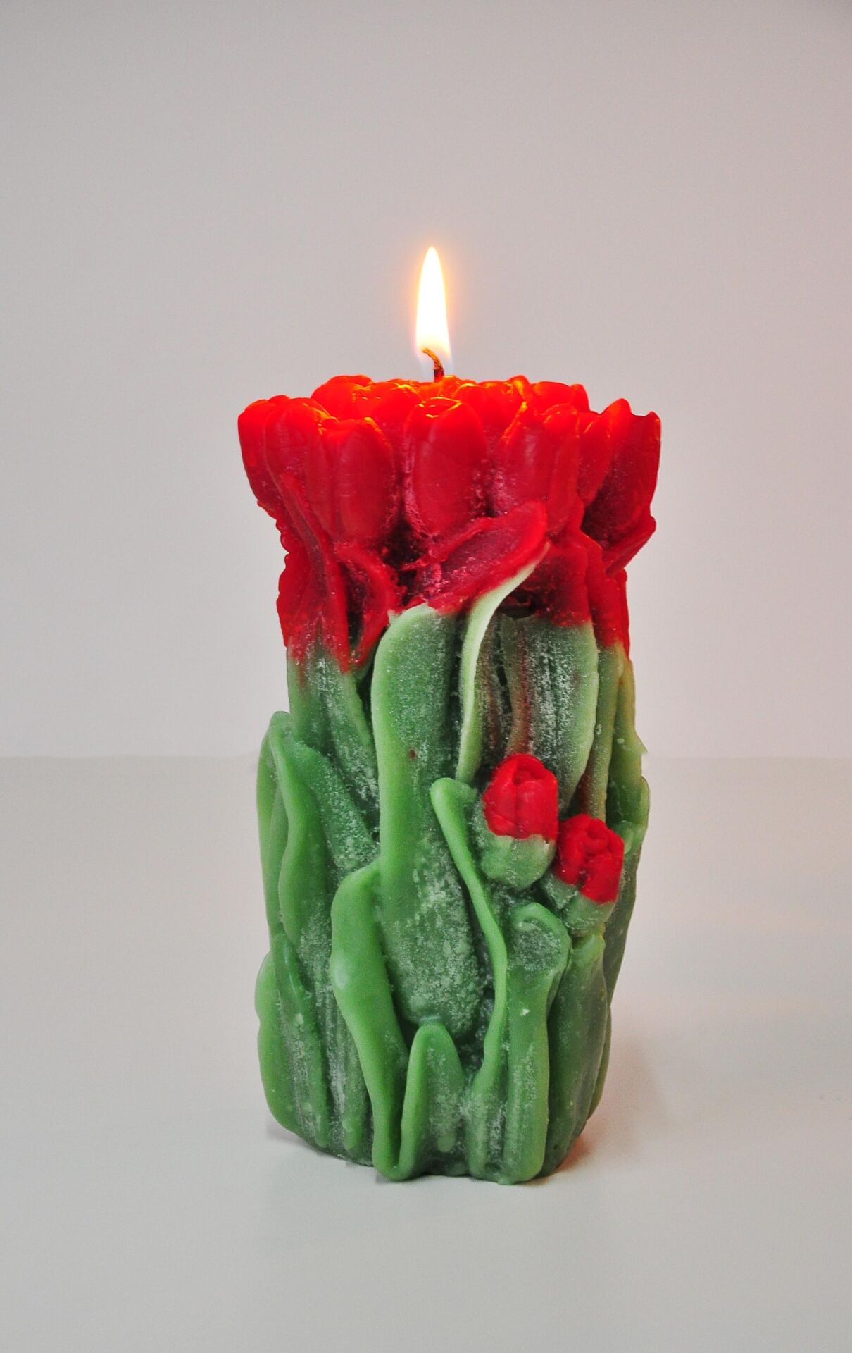 ÖZEL EL YAPIMI KIRMIZI LALE MUM
