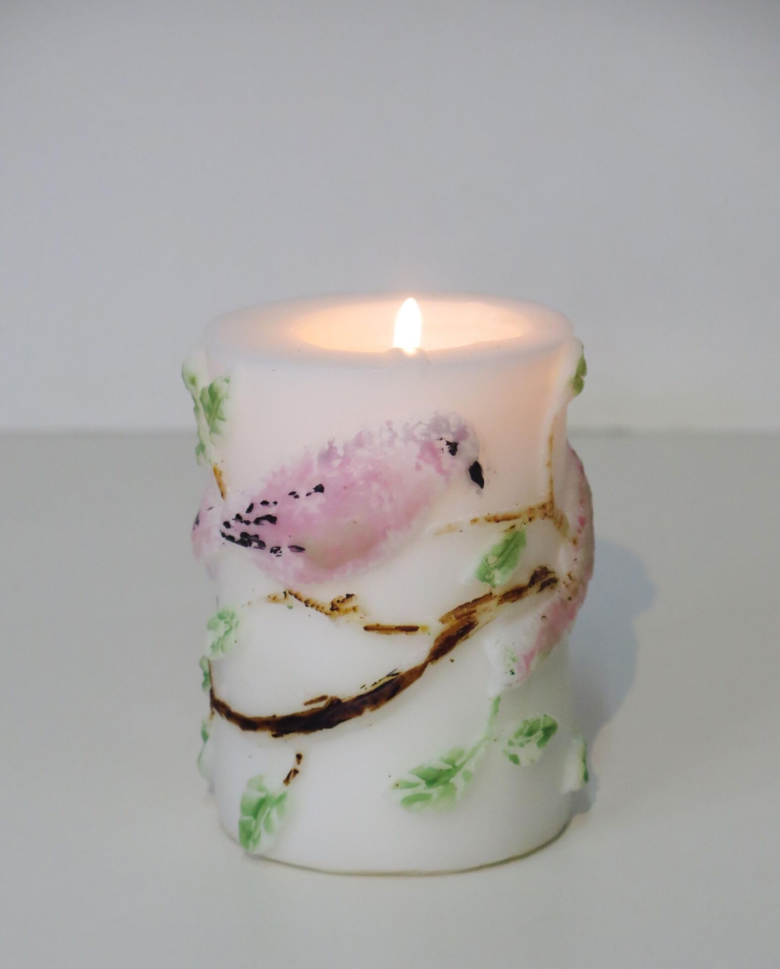 EL YAPIMI KUŞ KABARTMALI MUMçap:7 cm, h:9 cm