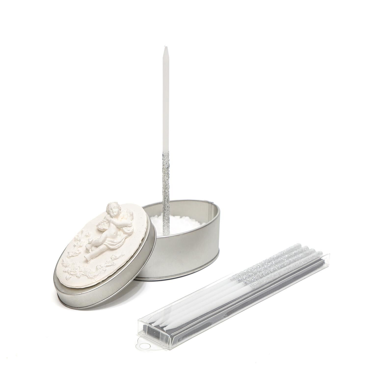 Gümüş Simli 5'li Dilek Mumu ve Kokulu Melek Seramik Taşlı Teneke Kutu Seti