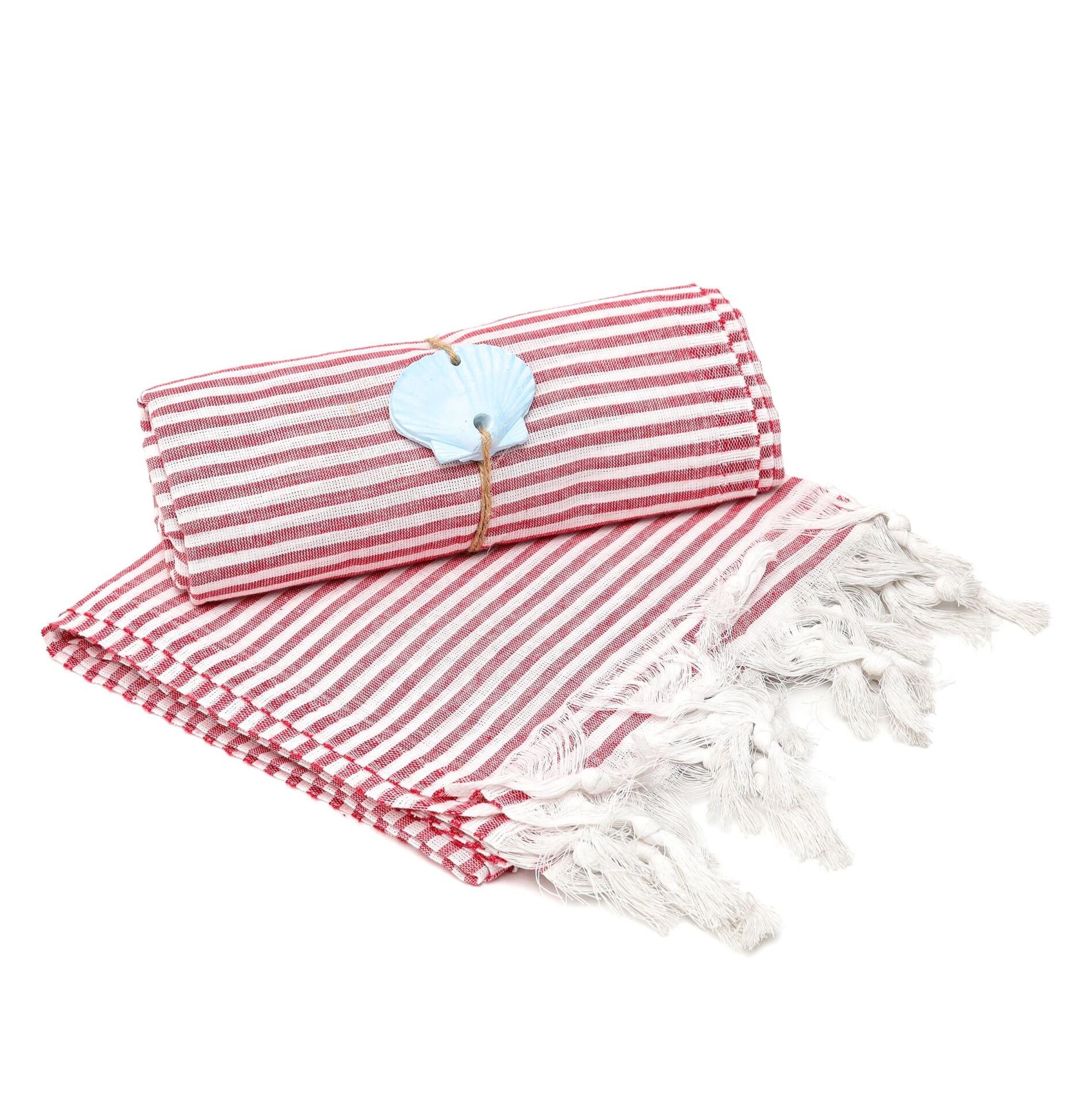 Kırmızı-Beyaz Çizgili Yıkanmış Pamuk Peştemal