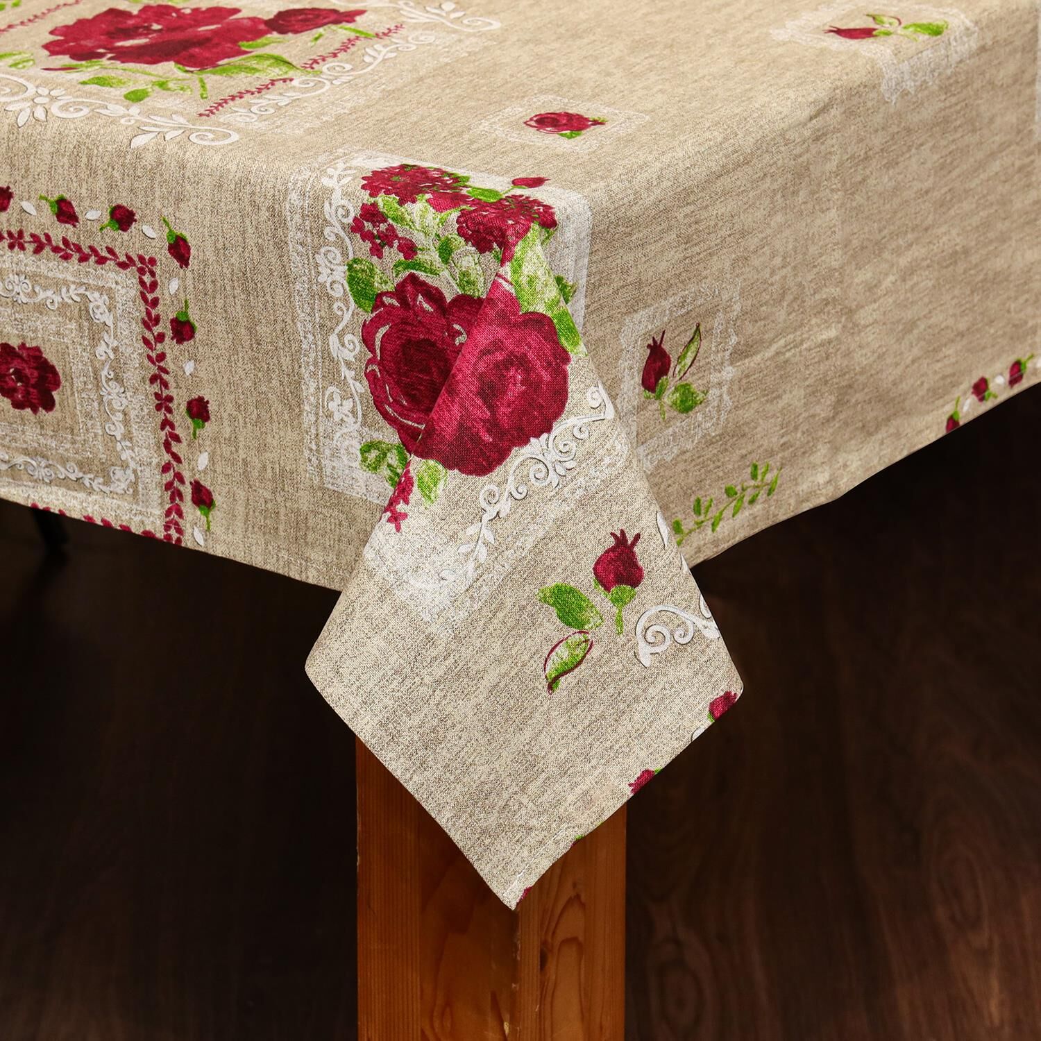 KIRMIZI GÜL DESENLİ PAMUK MASA ÖRTÜSÜ