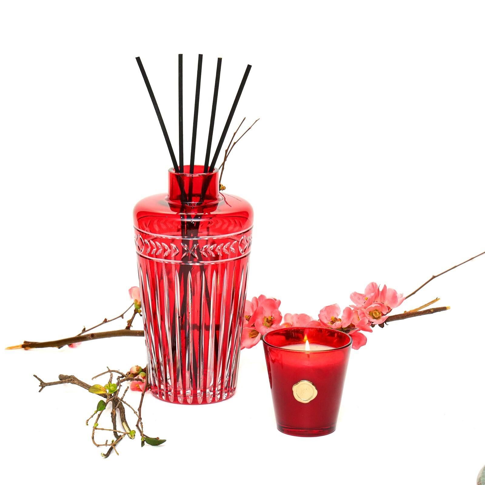 Kırmızı Kristal Kesme Cam Şişe Black Vanilya Oda Kokusu (23 cm)