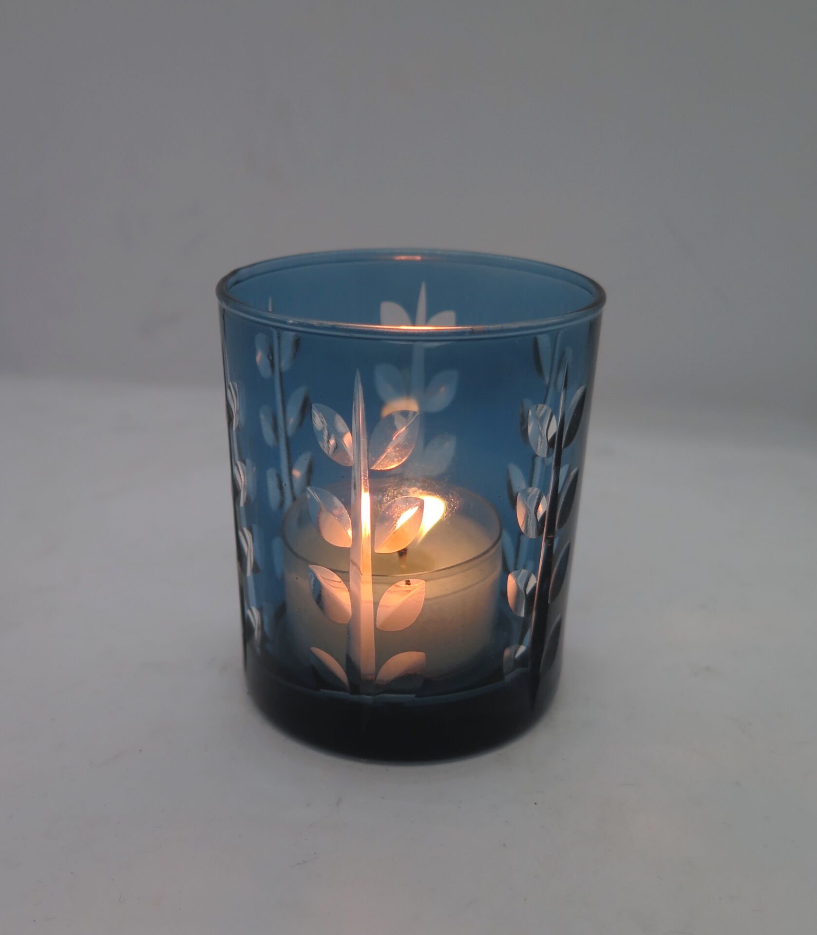 MİSSİ MAVİ KRİSTAL YAPRAK KESME ORTA BOY CAM MUMLUK