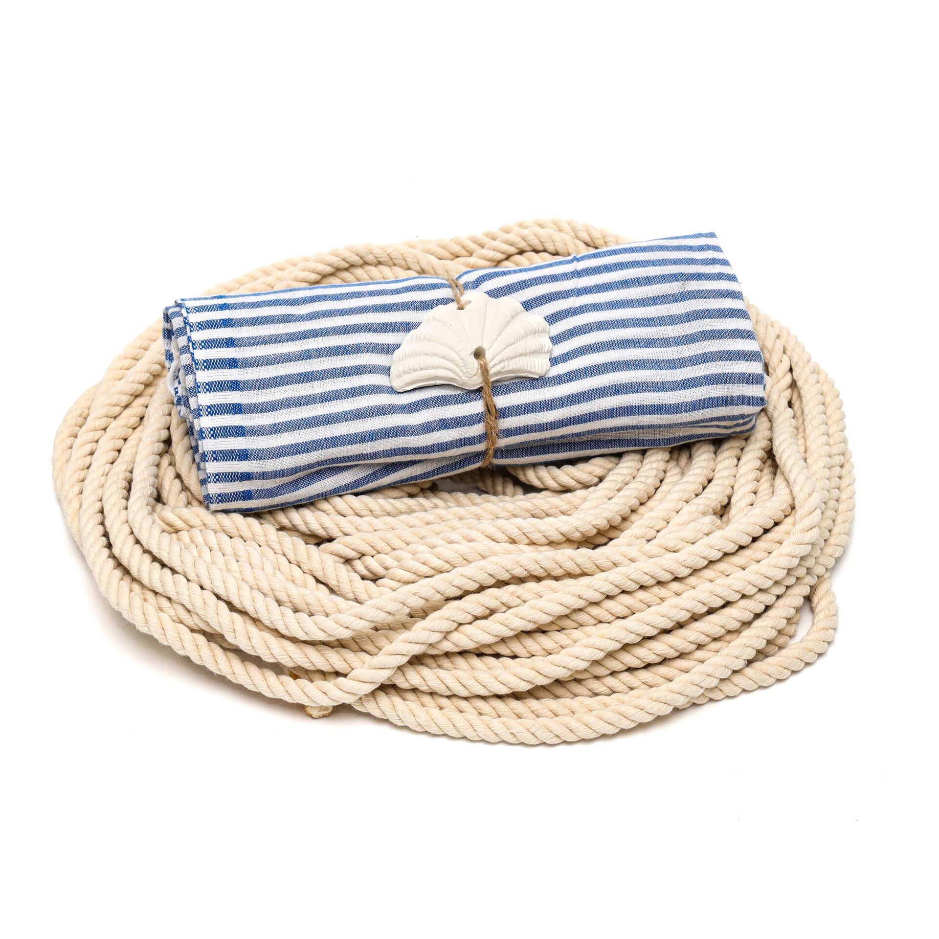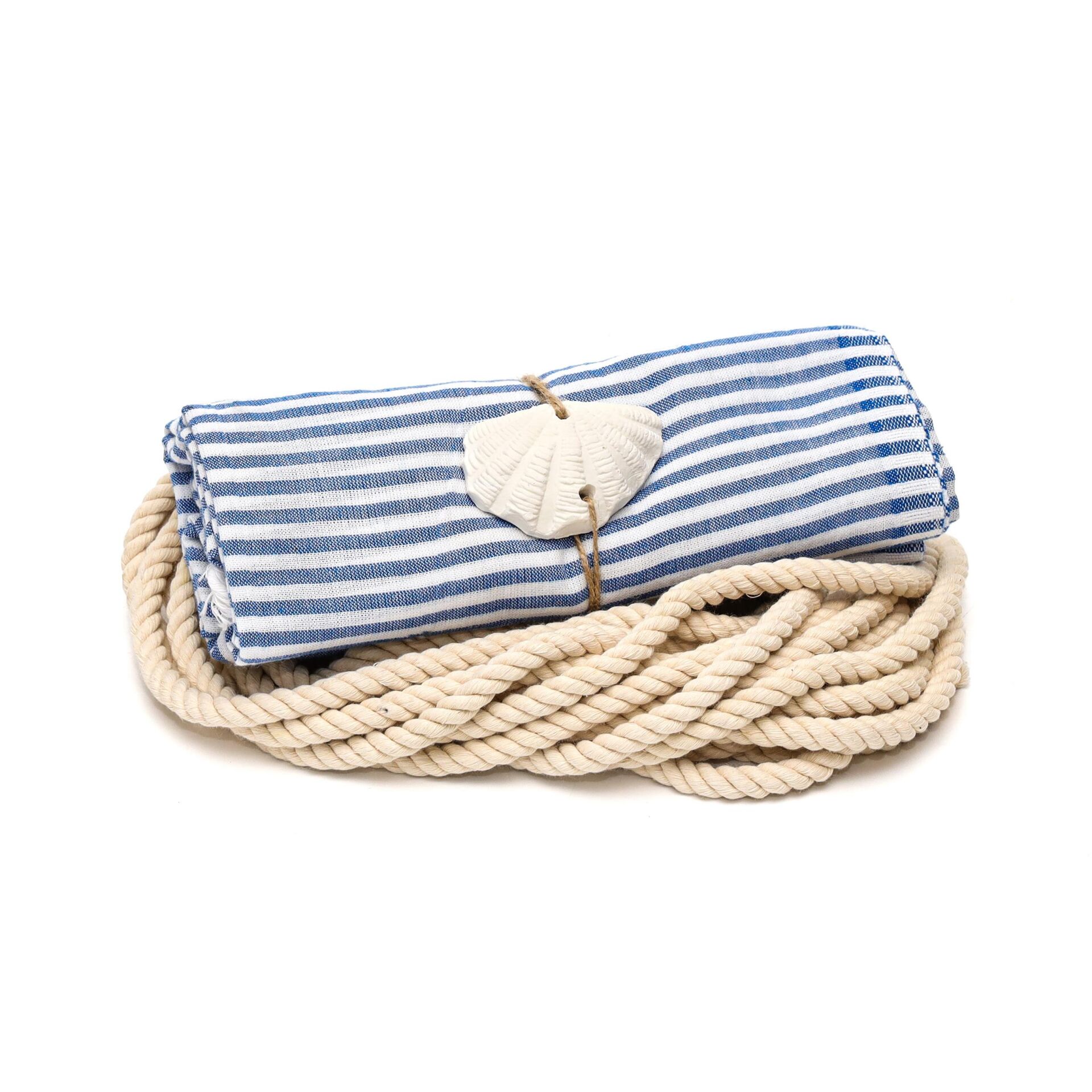 Lacivert-Beyaz Çizgili Yıkanmış Pamuk Peştemal