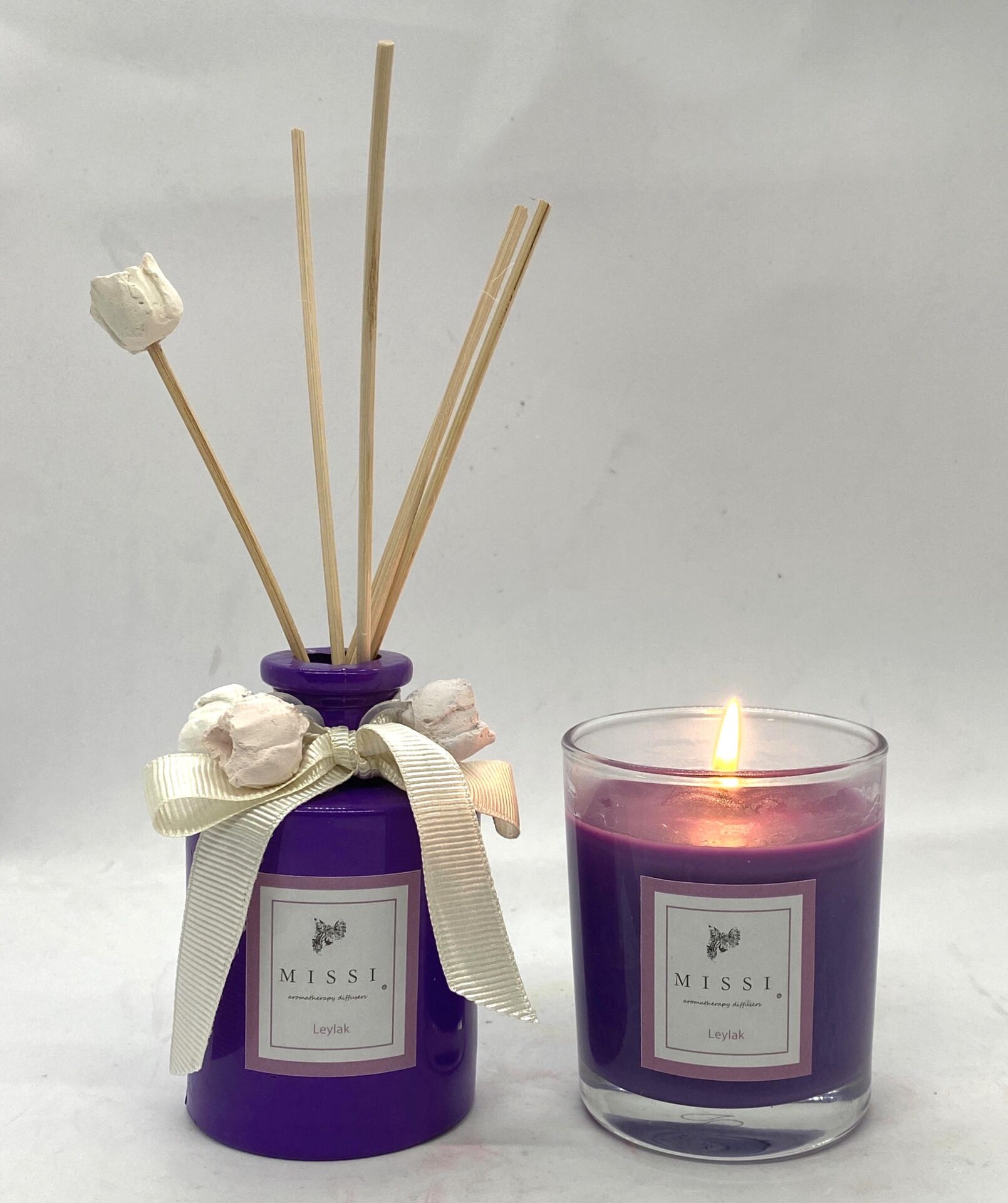MOR 110 CC BAMBU ÇUBUKLU LEYLAK ODA KOKUSU VE MUM SETİ