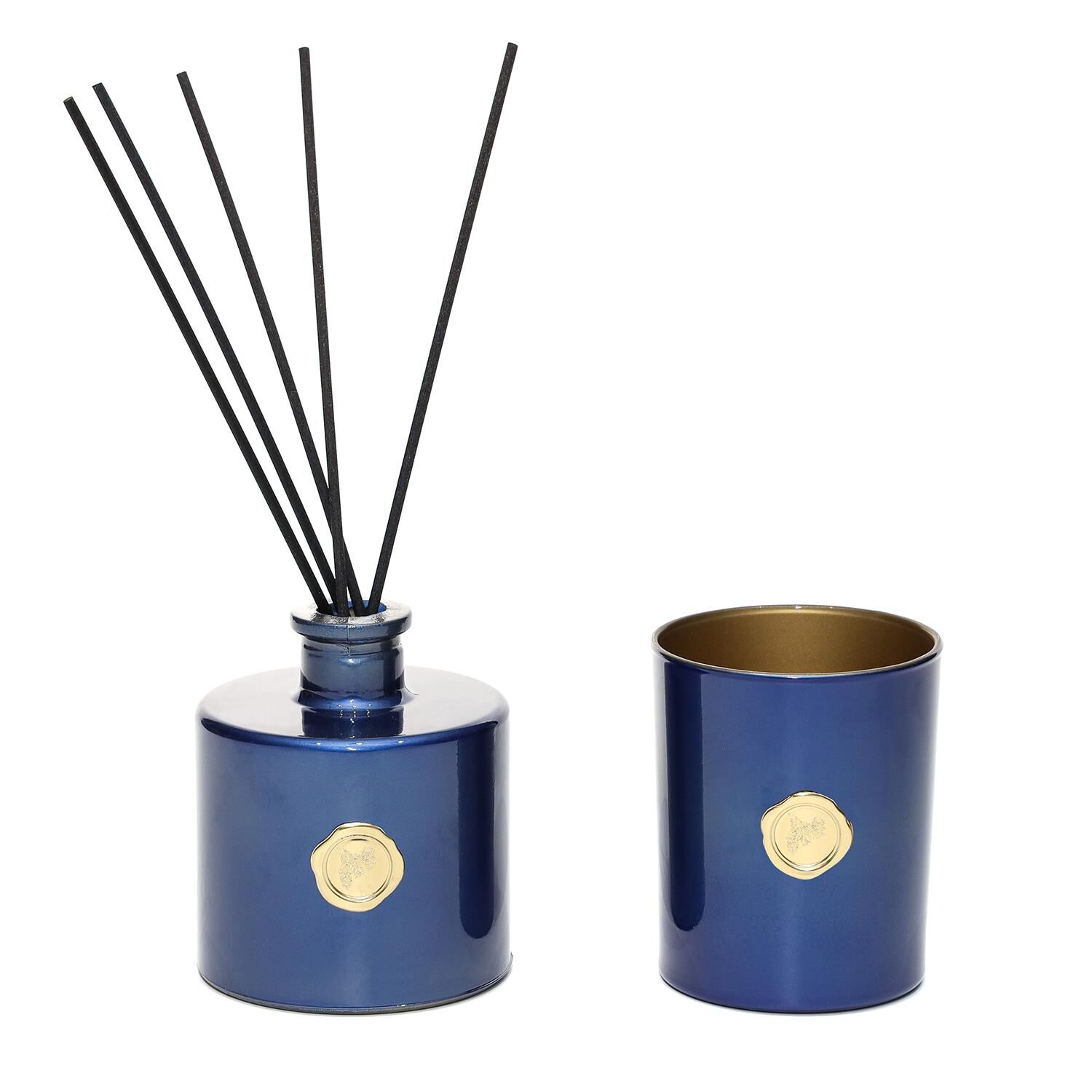 200 ml Mavi Parlak cam Oda Kokusu ve Mumluk Seti