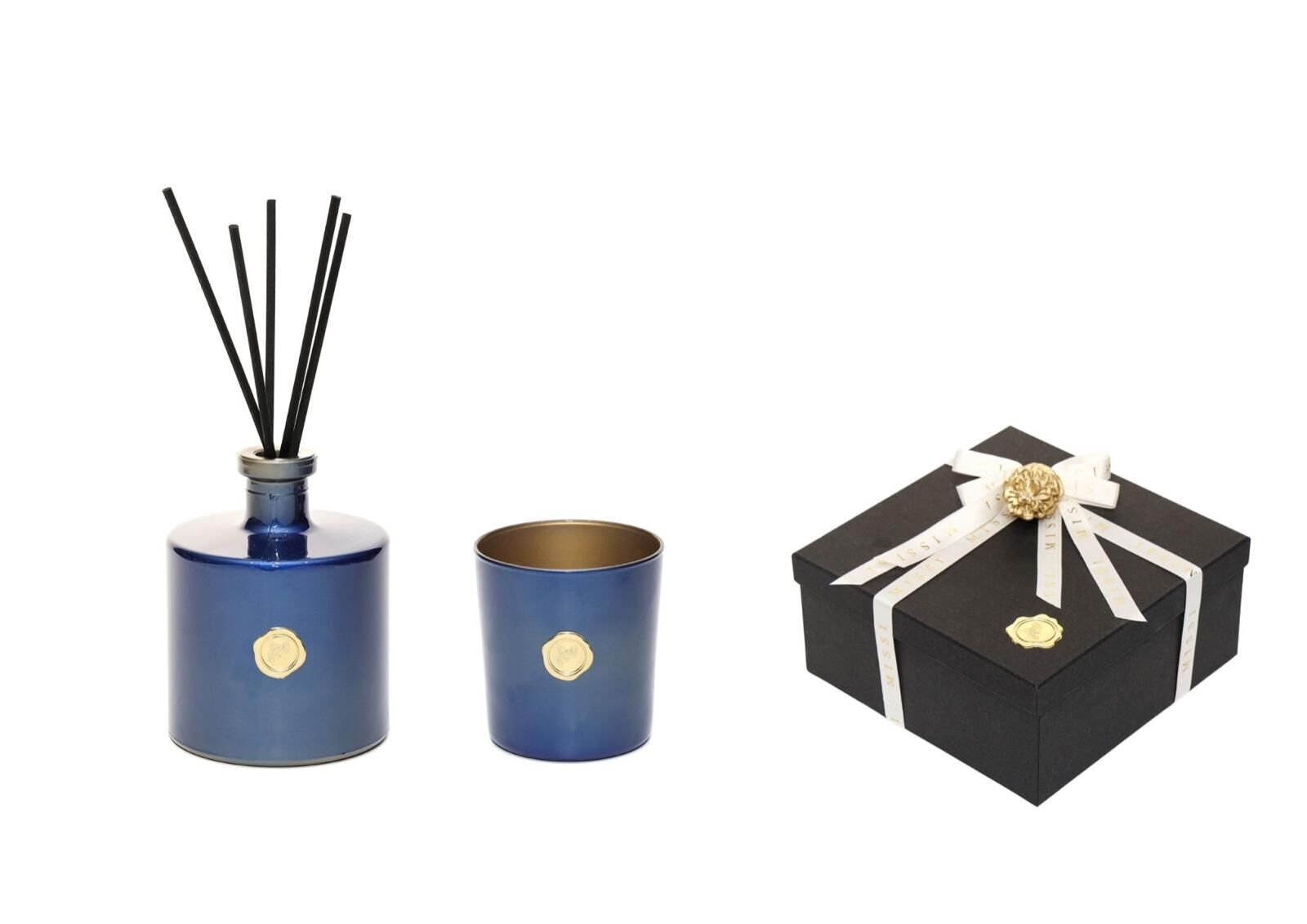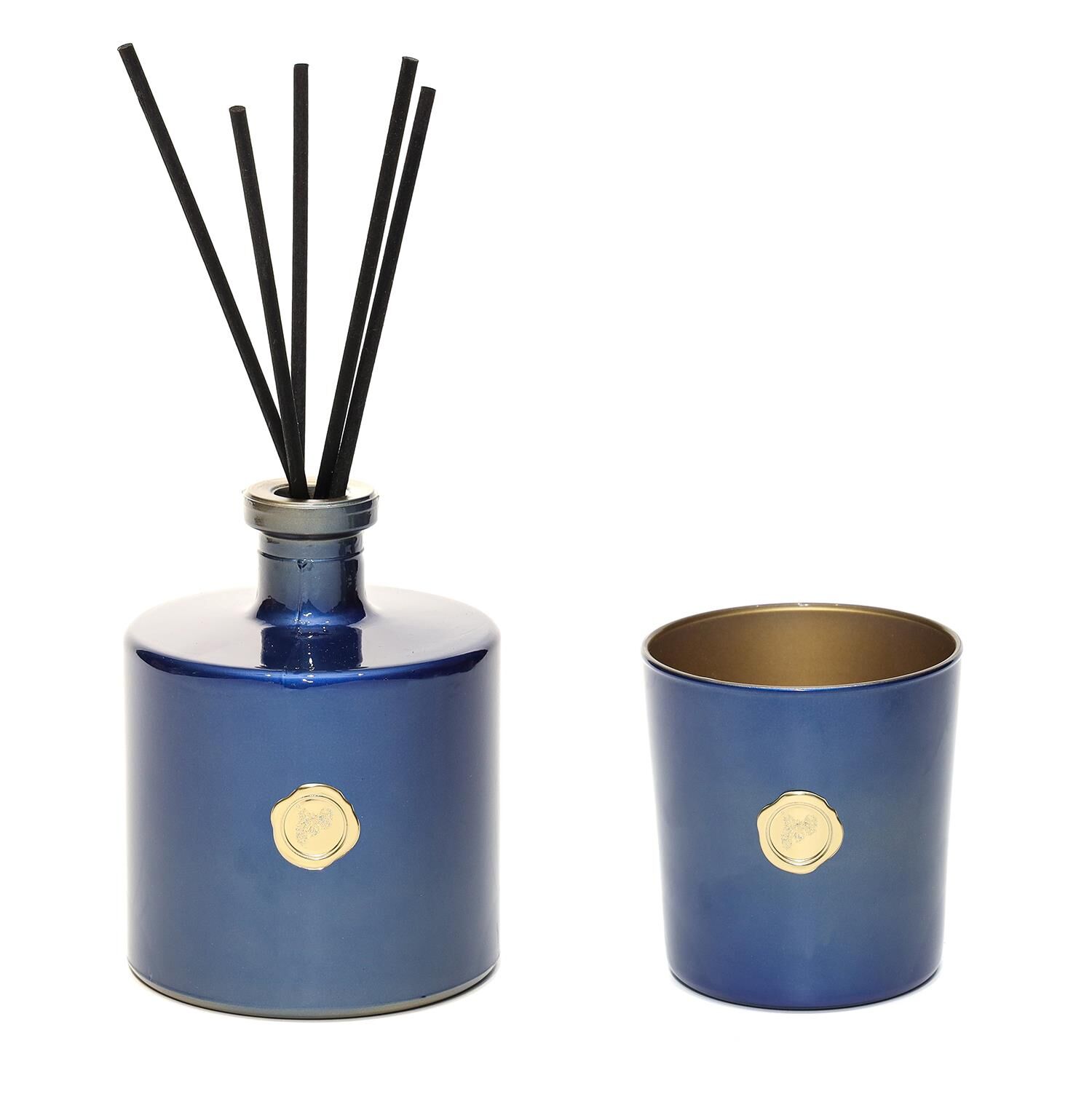 500 ml Mavi Parlak cam Oda Kokusu ve Mumluk Seti