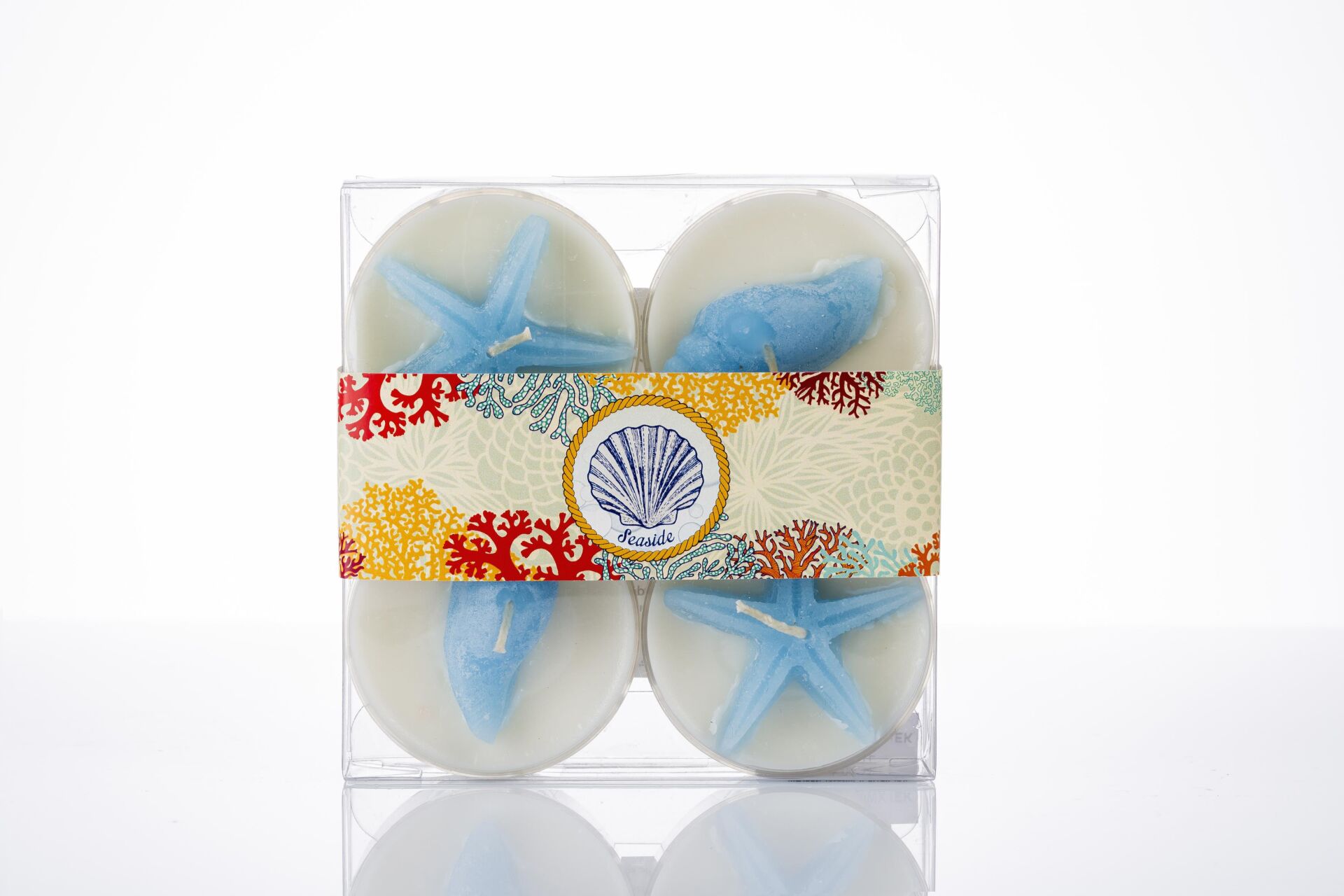 MİSSİ MARİN MAVİ DEKORLU OCEAN KOKULU 4LÜ MUM SETİ
