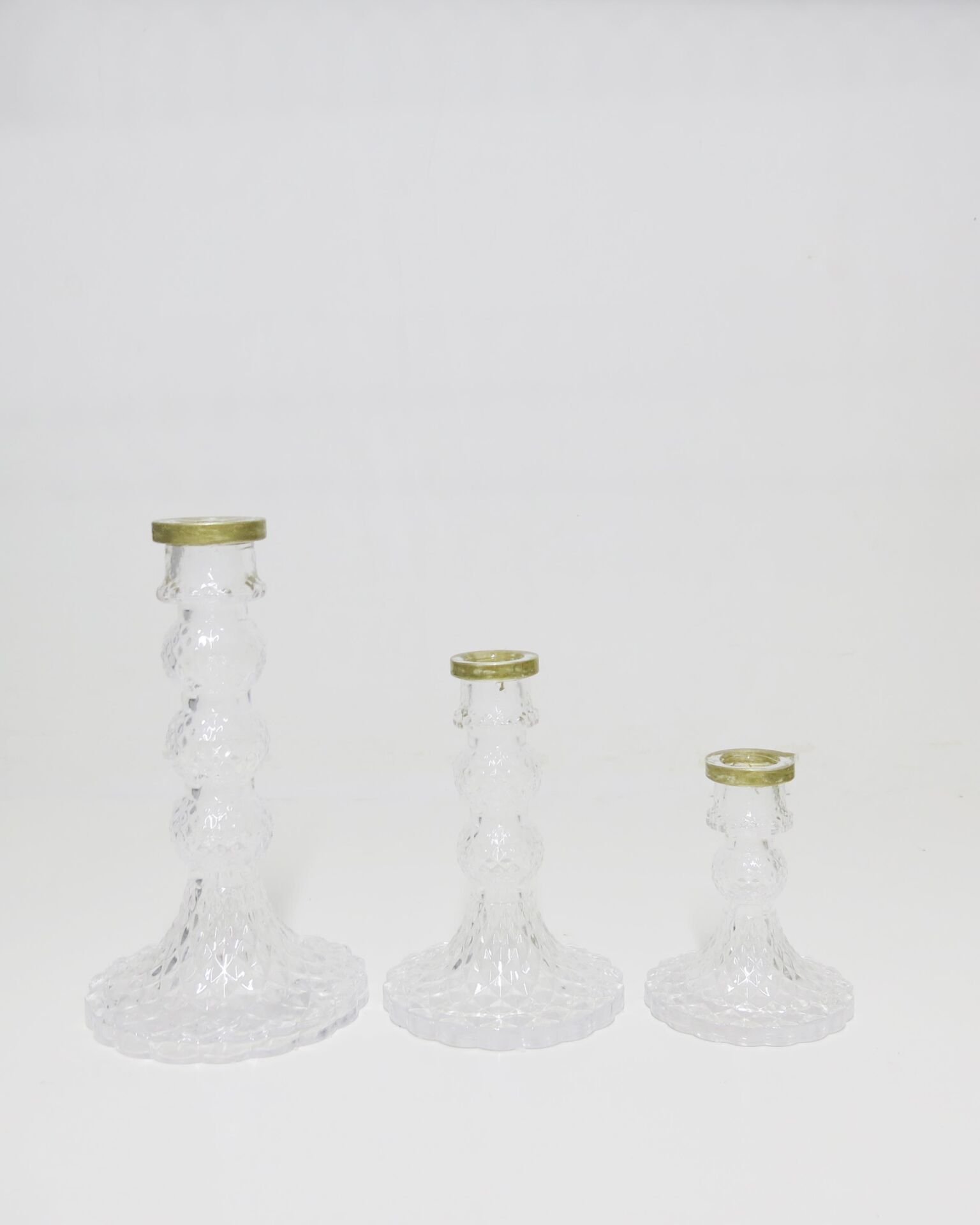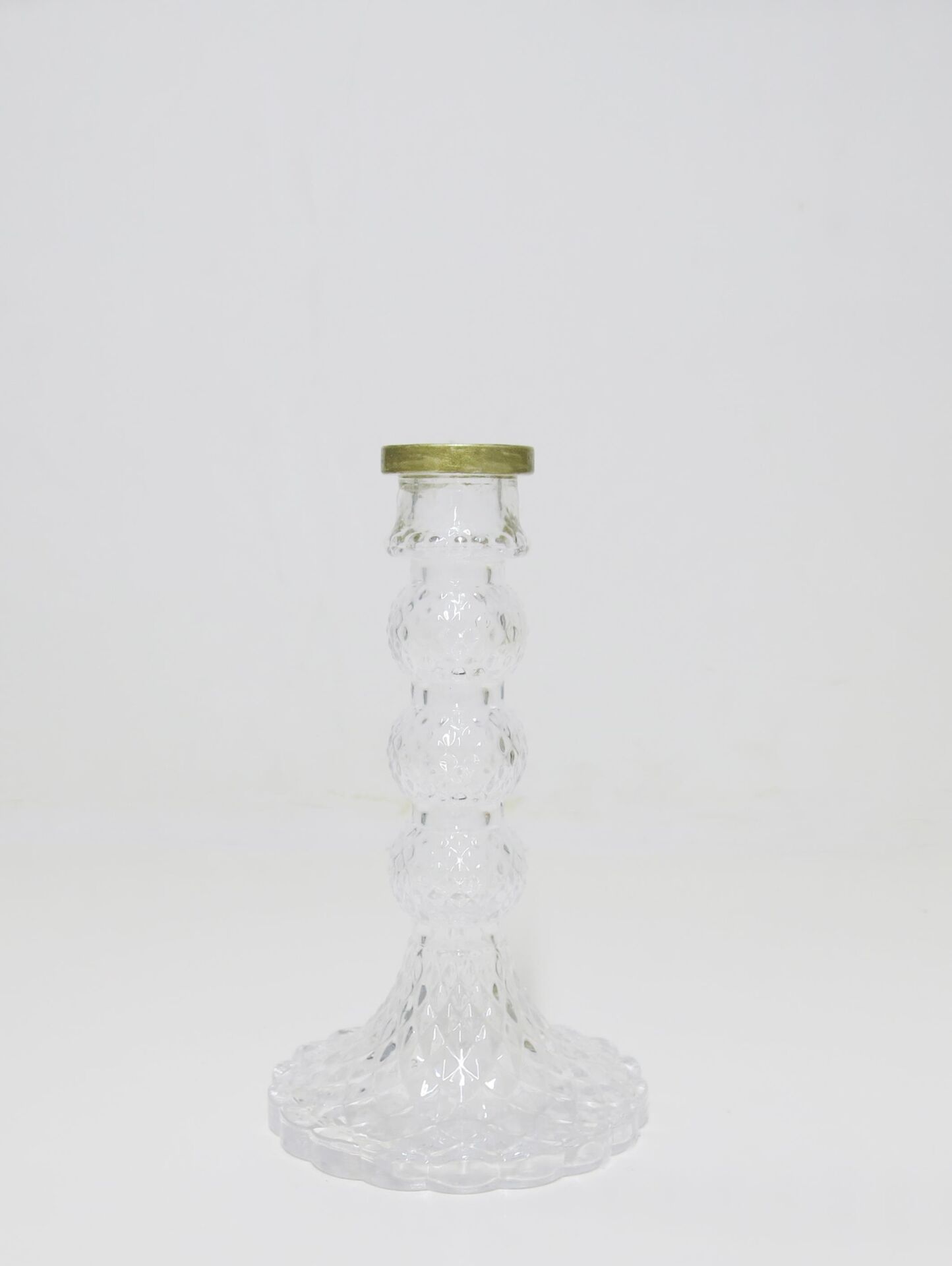 MİSSİ 20 CM GOLD BOYUNLU RÖLYEF KABARTMALI KRİSTAL ŞAMDAN MUMLUK VE MUM SETİ