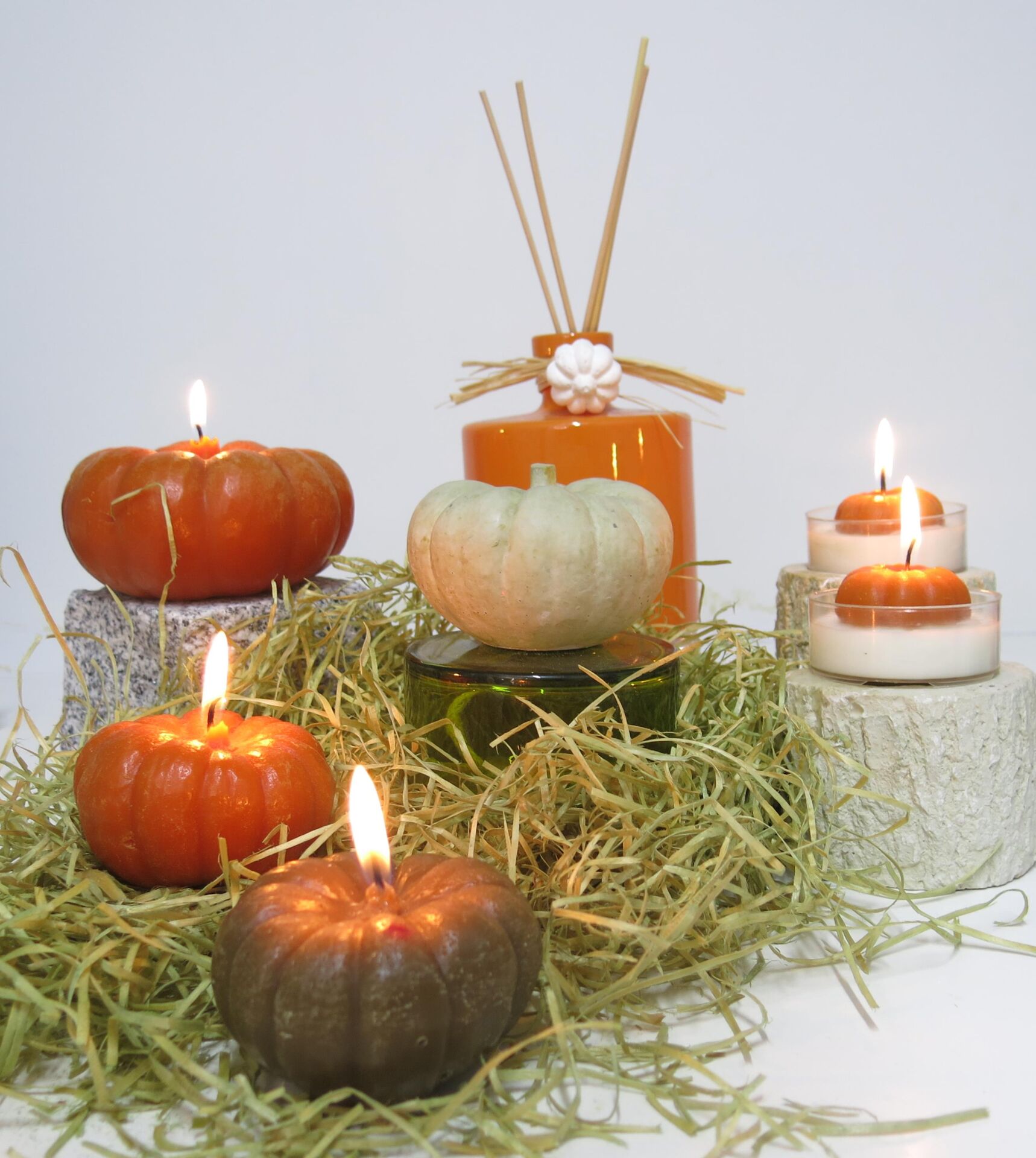3 BOY DEKORATİF TARÇIN BALKABAĞI MUM SETİ