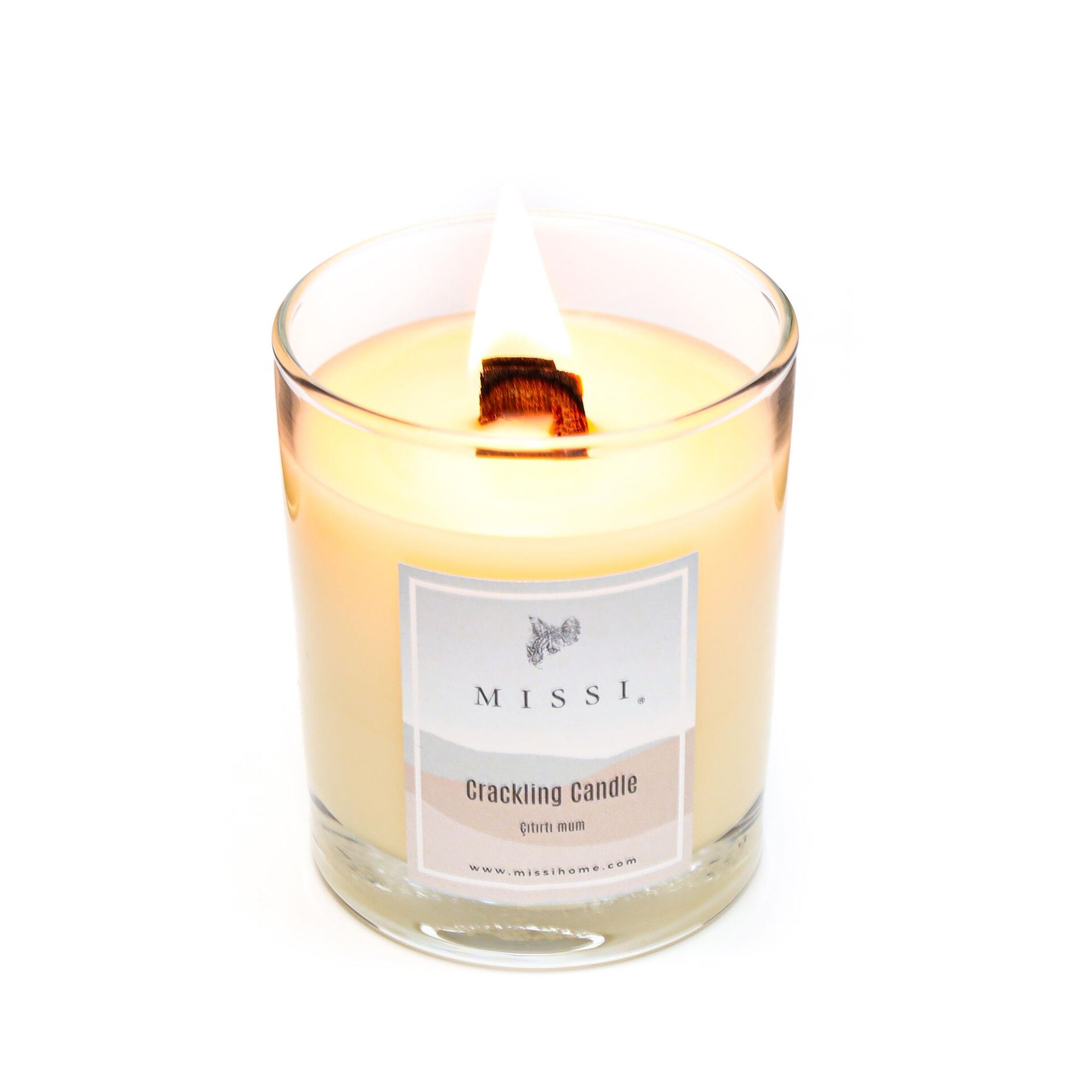 6x8 cm, ort 130-140 gr brüt 320 gr.Bitkisel yağ ile imal edilmiştir.Bittikten sonra ebatına uygun ahşap fitilli missi çıtırdayan refil mum alarak kullanabilirsiniz.Uzun saatler yaktığınız zaman mumun üst kısmı likit olmaktadır,likit çoğaldığı zaman çıtırtı kısmen azaldığı için bardağı az bir şekilde oynatarak yanma esnasındaki çıtırtının çoğaldığını göreceksiniz.Yağların karışma ve ahşap özelliğine istinaden mum yanarken odun çıtırtısı çıkartarak ambiyansınıza hoşluk katacaktır.