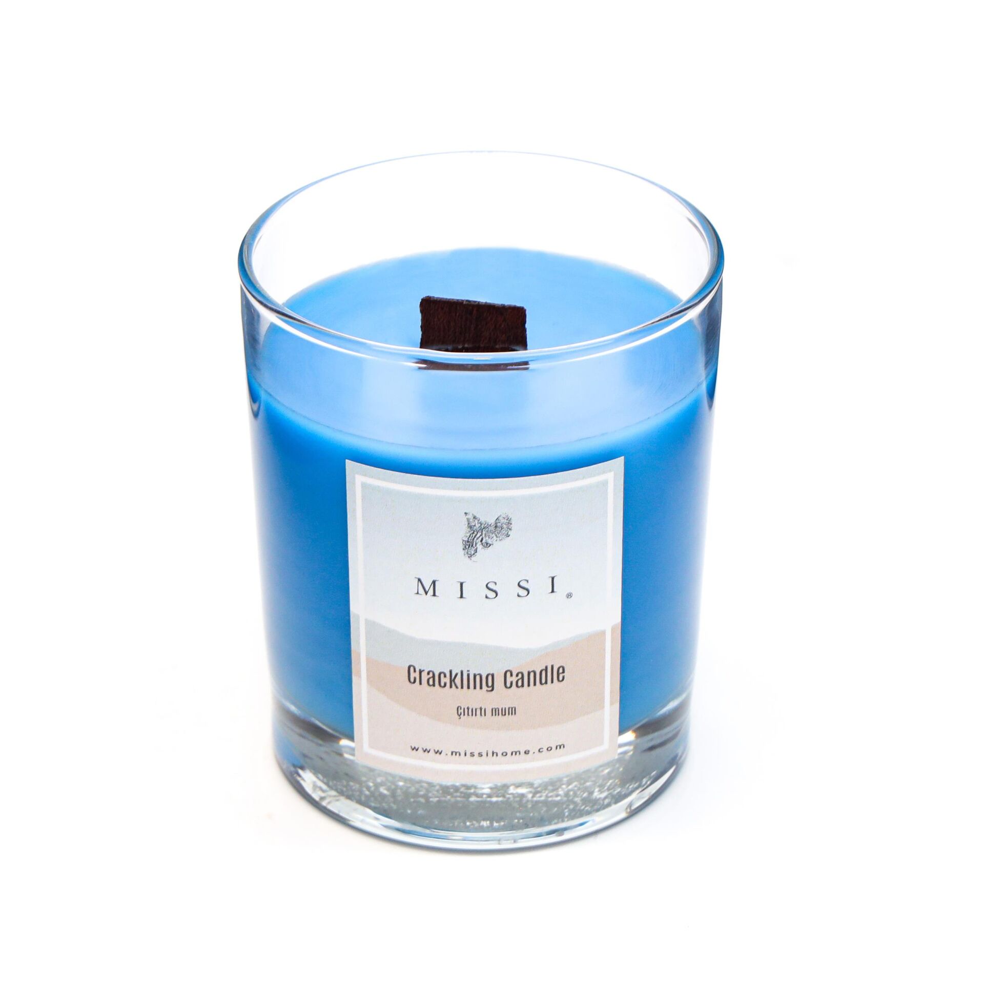 Ahşap Fitilli Sandal Wood Mavi Çıtırtılı Vegan Mum (Crackling)