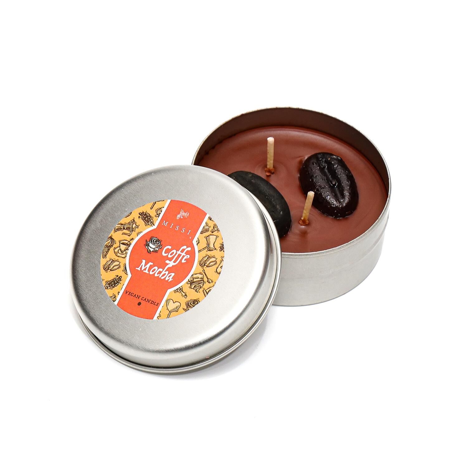 MİSSİ COFFE MOCHA KOKULU SILVER TENEKE VEGAN MUM /SEYAHAT MUMU