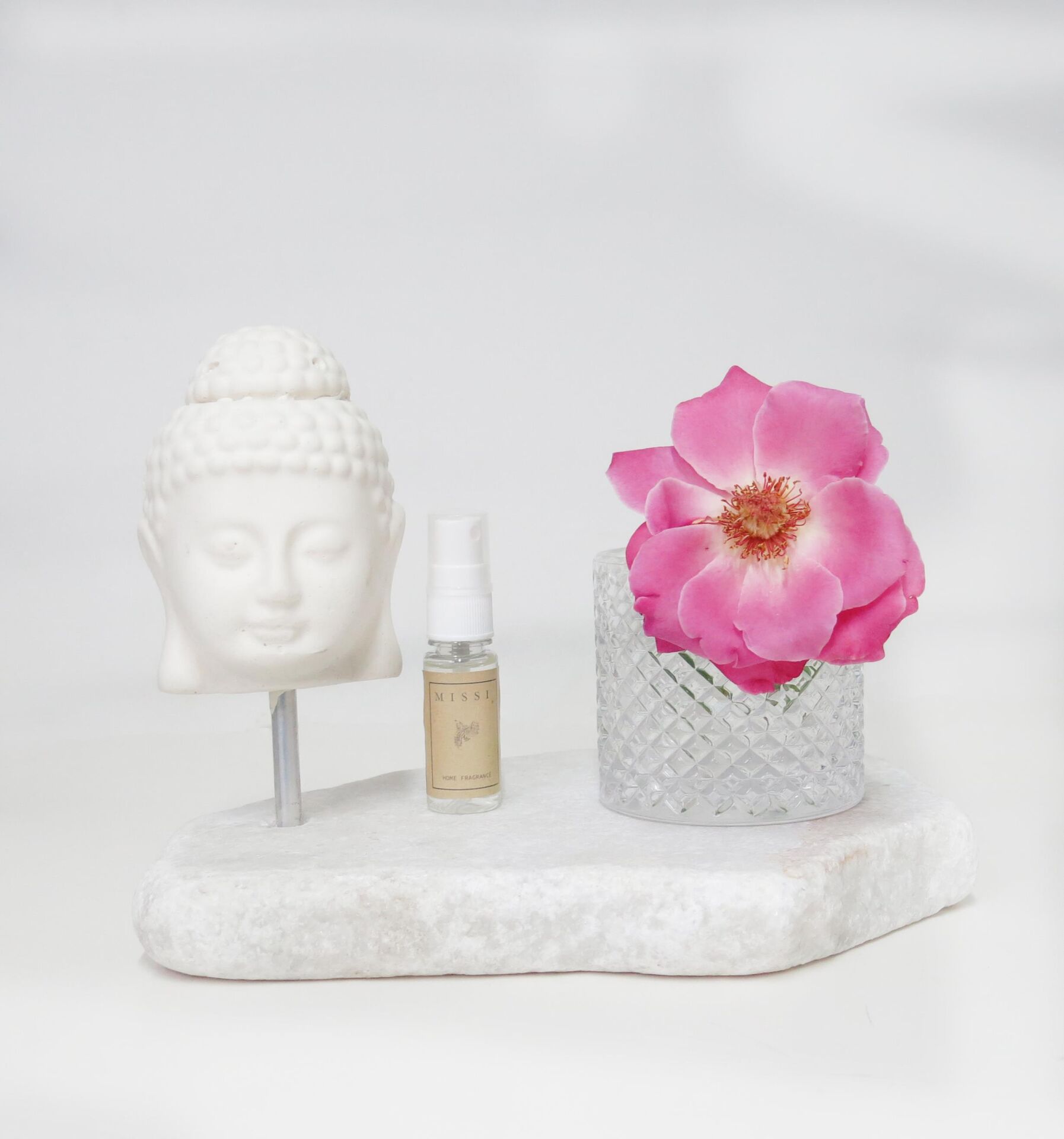 Doğal kaide, dekoratif heykel ve 20 cc esans ile birlikte gönderilmektedir.Kaideler natürel olduğundan ebat ve renk tonlarında farklılık olabilmektedir.Seramik buddha paslanmaz metal boruyla taş kaide üzerine konmuştur.Buddha’nın yönü istenilen yöne hareket ettirilebilmektedir.İstendiği zaman çıkarılarak sadece kaide olarak da kullanılabilir.