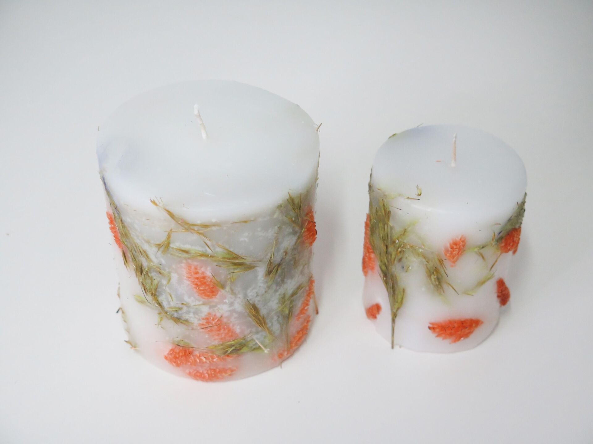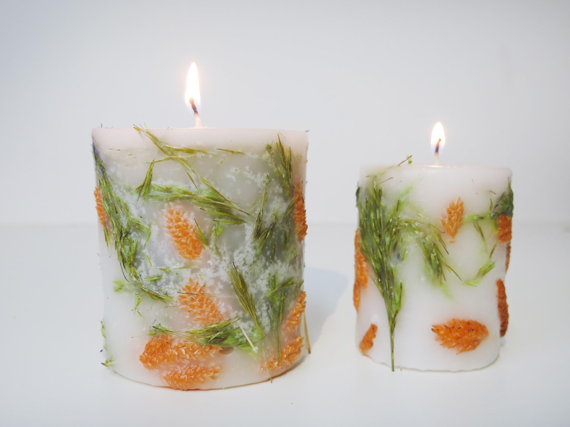 MİSSİ EL YAPIMI DOĞAL BİTKİLİ 2Lİ TURUNCU-YEŞİL MUM SETİ