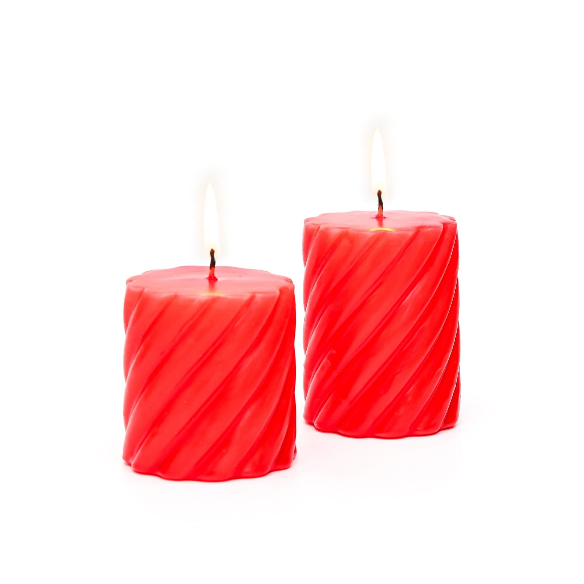 KIRMIZI 2Lİ SPIRAL BLOK MUM SETİ