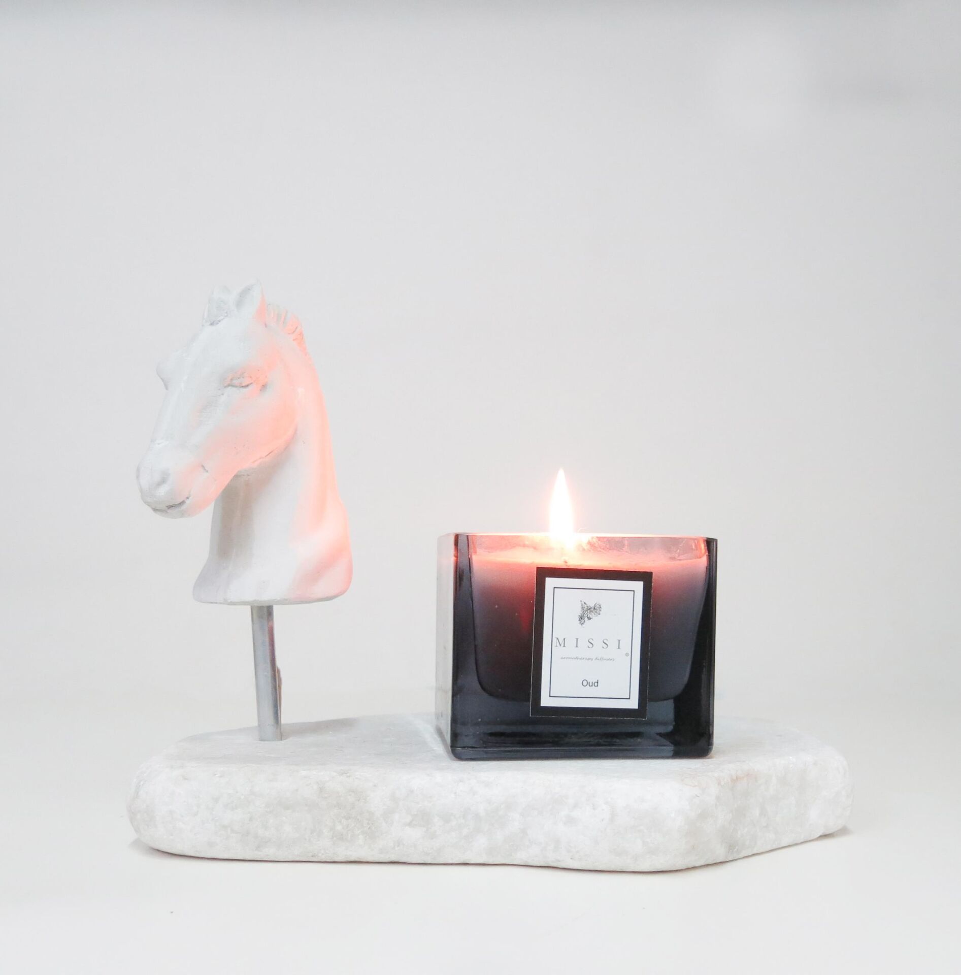 Doğal kaide, dekoratif heykel ve 15 cc esans ile birlikte gönderilmektedir.Kaideler natürel olduğundan ebat ve renk tonlarında farklılık olabilmektedir.Seramik at paslanmaz metal boruyla taş kaide üzerine konmuştur.Atın yönü istenilen yöne hareket ettirilebilmektedir.İstendiği zaman çıkarılarak sadece kaide olarak da kullanılabilir.Gönderilen esans atın üzerine sıkılarak bulunduğu mekana koku yaymaktadır. ortalama h 20 cm en 24 cm