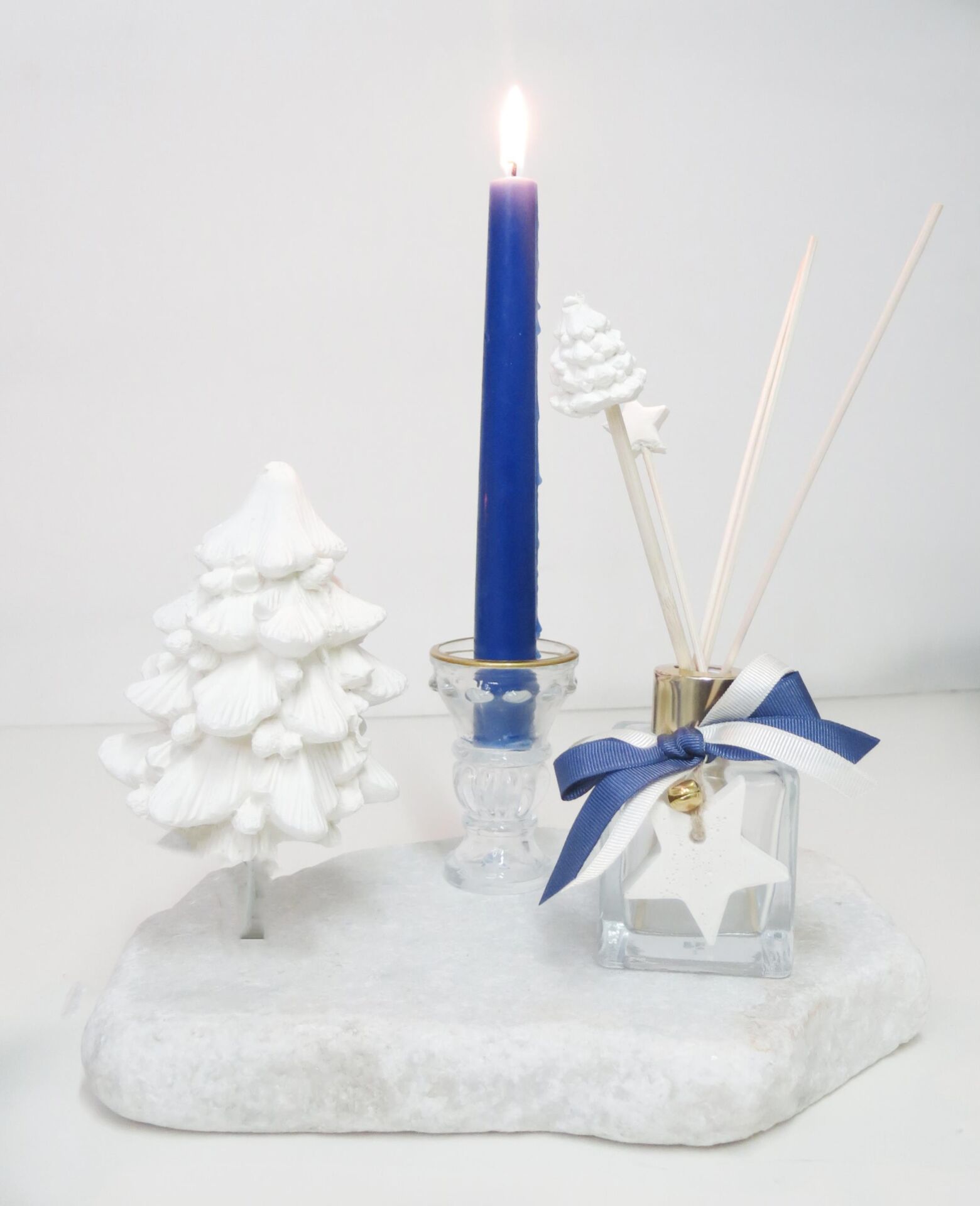 Doğal kaide, dekoratif heykel ve 15 cc esans ile birlikte gönderilmektedir.Kaideler natürel olduğundan ebat ve renk tonlarında farklılık olabilmektedir.Seramik çam ağacı paslanmaz metal boruyla taş kaide üzerine konmuştur.Çam ağacının yönü istenilen yöne hareket ettirilebilmektedir.İstendiği zaman çıkarılarak sadece kaide olarak da kullanılabilir.Gönderilen esans çam ağacının üzerine sıkılarak bulunduğu mekana koku yaymaktadır. ort h: 17 cm, en 24 cm