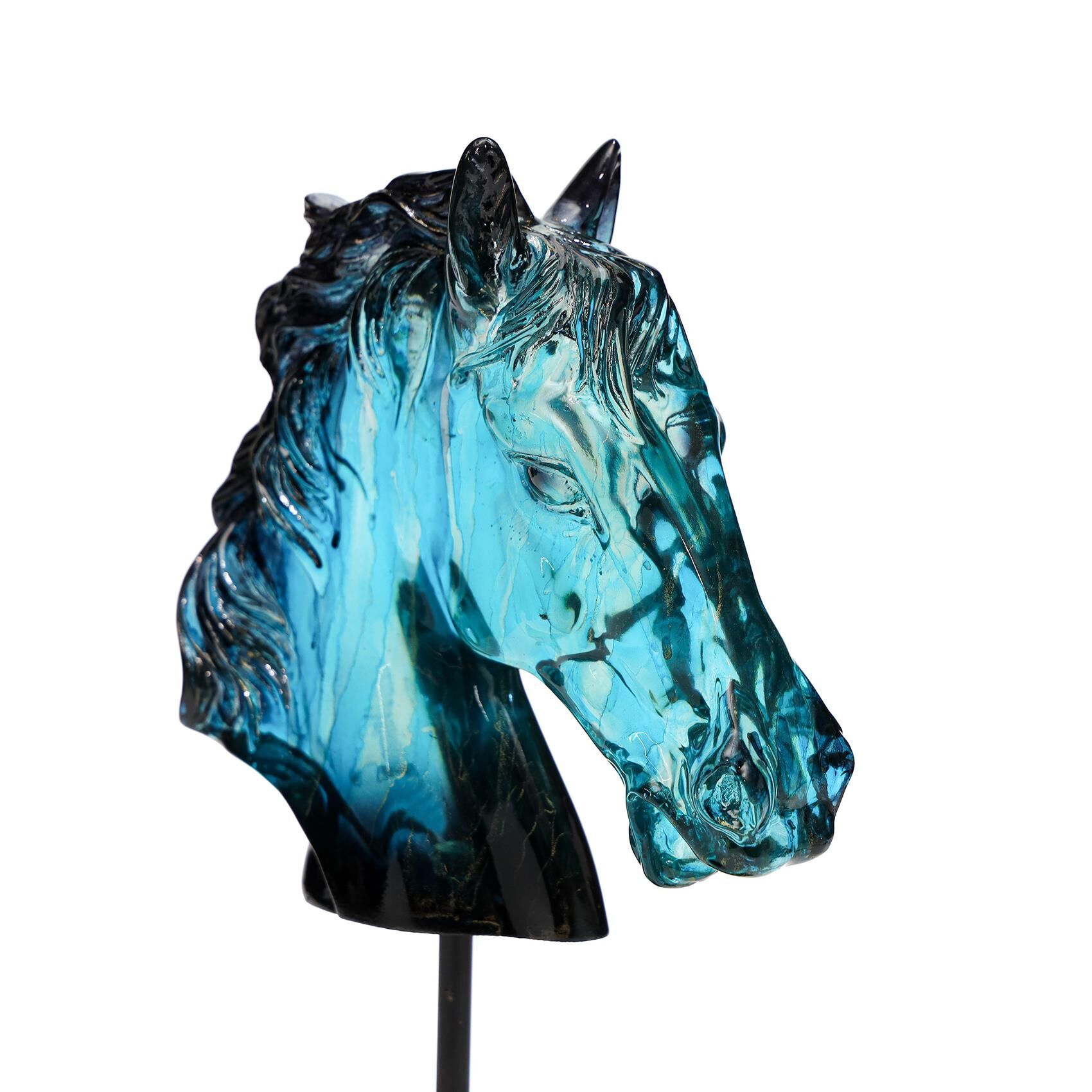 Özel El Yapımı Dekoratif Mavi At Büst/Heykel