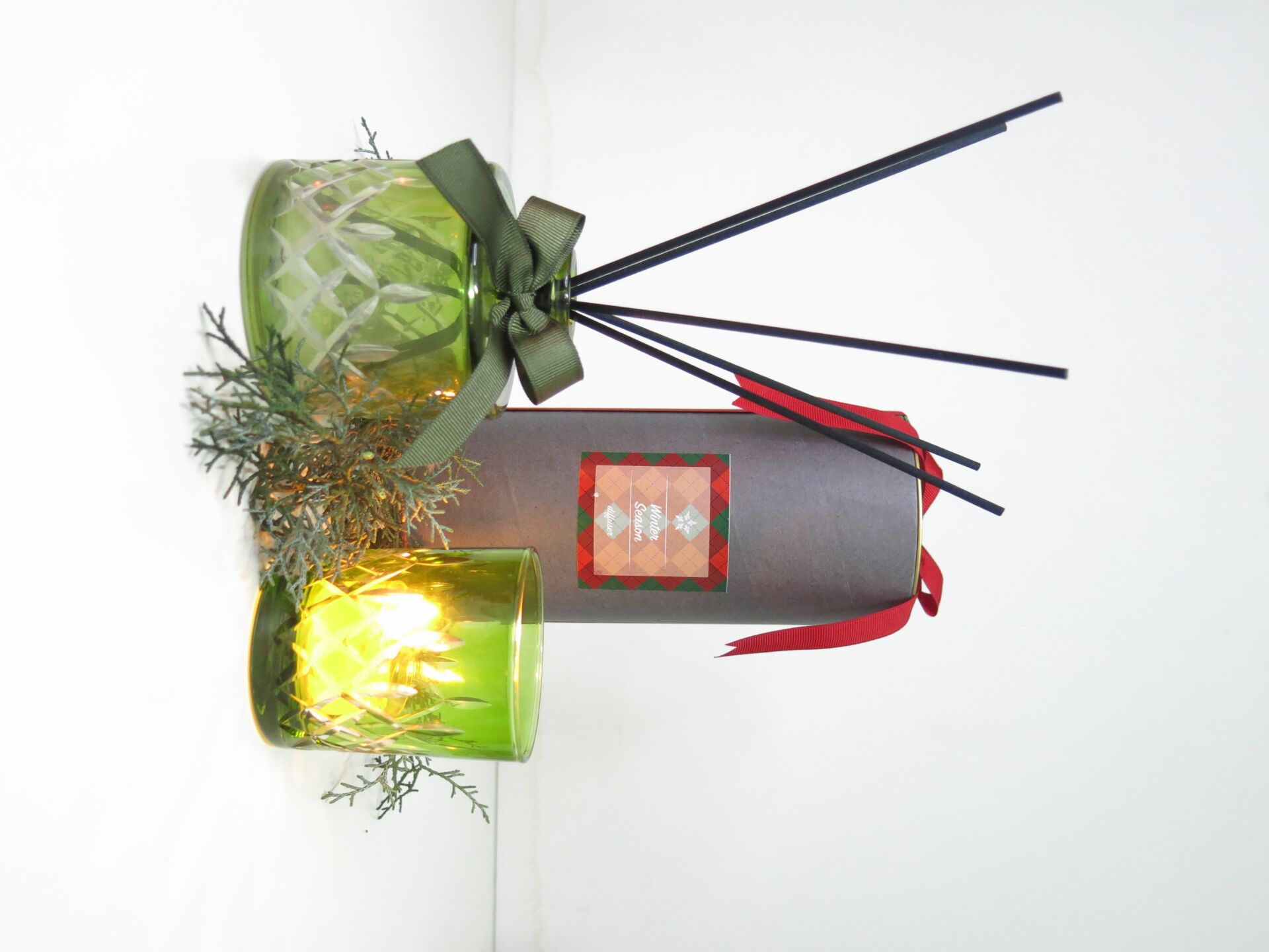 MİSSİ YILBAŞI ÖZEL KUTULU KRİSTAL ŞİŞE APPLE&CINNAMON ODA KOKUSU VE MUMLUK HEDİYE SETİ