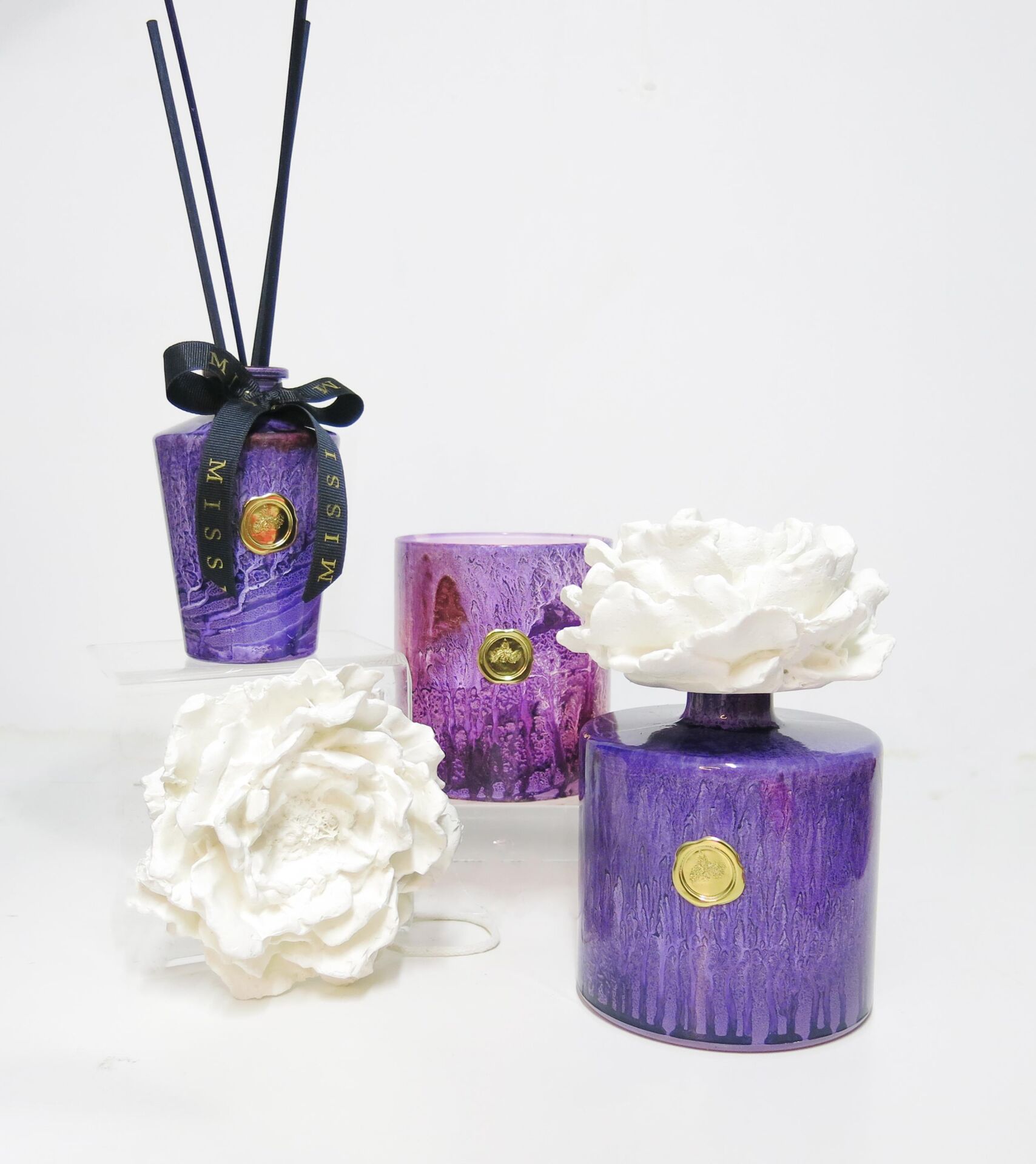 Mor batik desenli cam mumluk