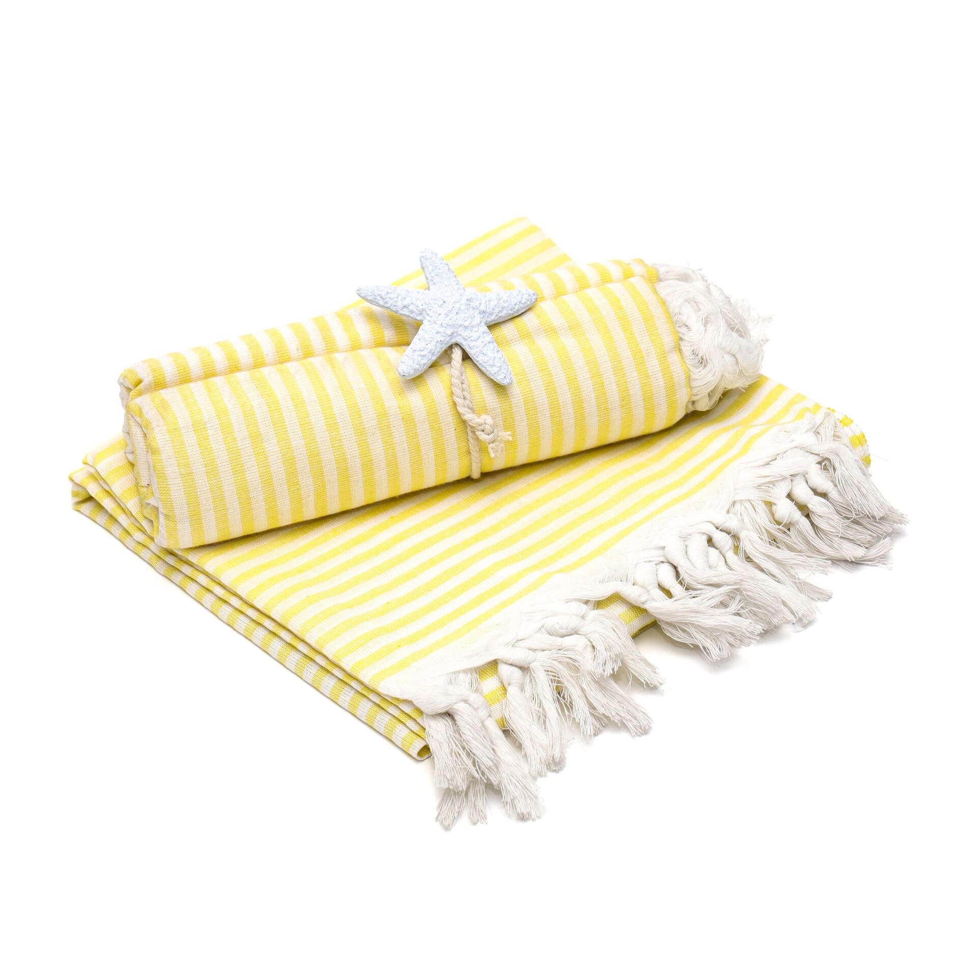Sarı-Beyaz Çizgili Yıkanmış Pamuk Peştemal