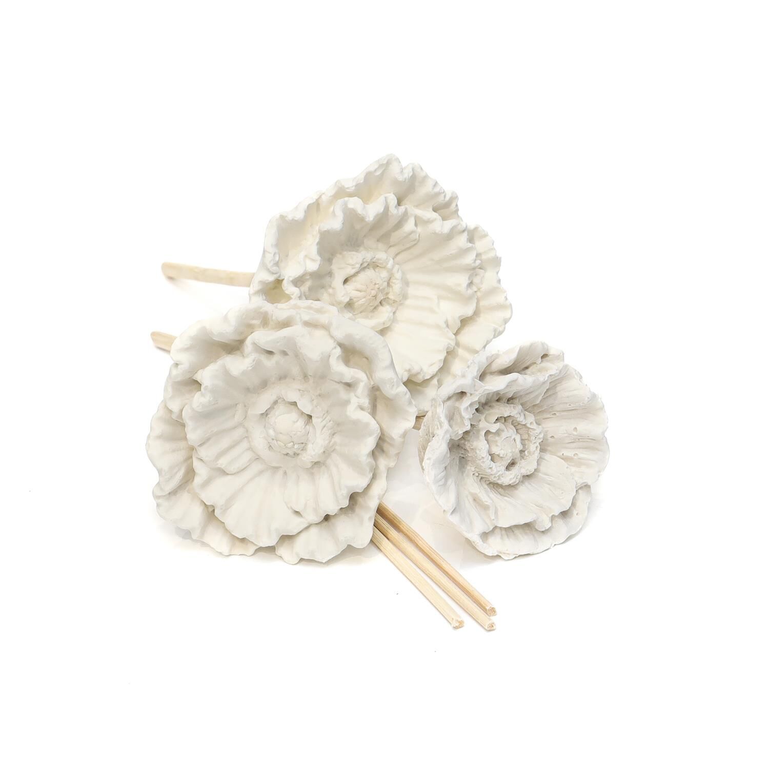 3 adet bambu kamışın ucunda Çiçek seramik taşı mevcuttur.