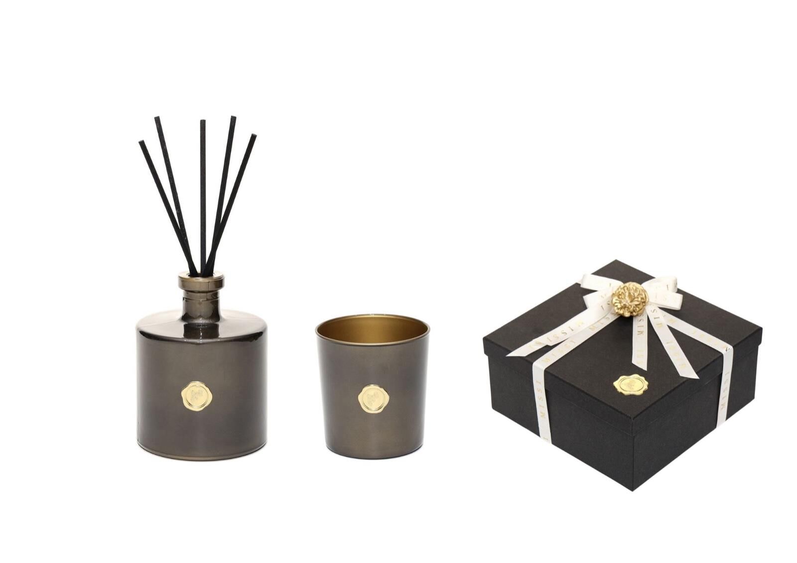 500 ml Siyah Parlak cam Oda Kokusu ve Mumluk Seti