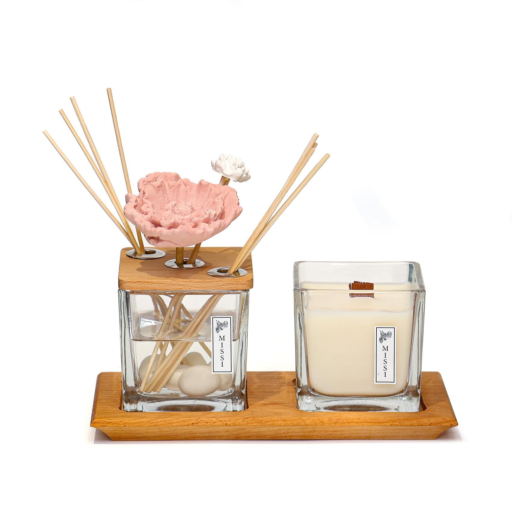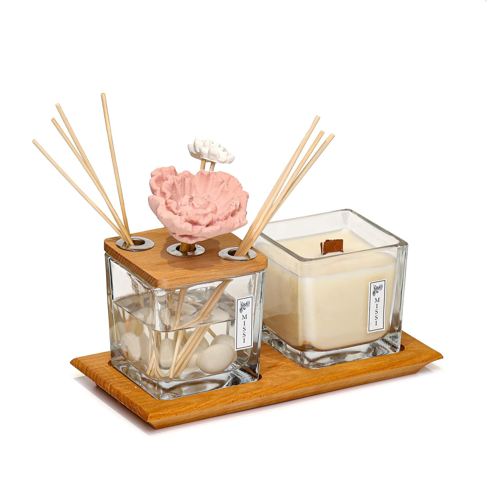 Vıp 250 ml Dekorlu Dark Amber Oda Kokusu ve Vegan Mum Seti