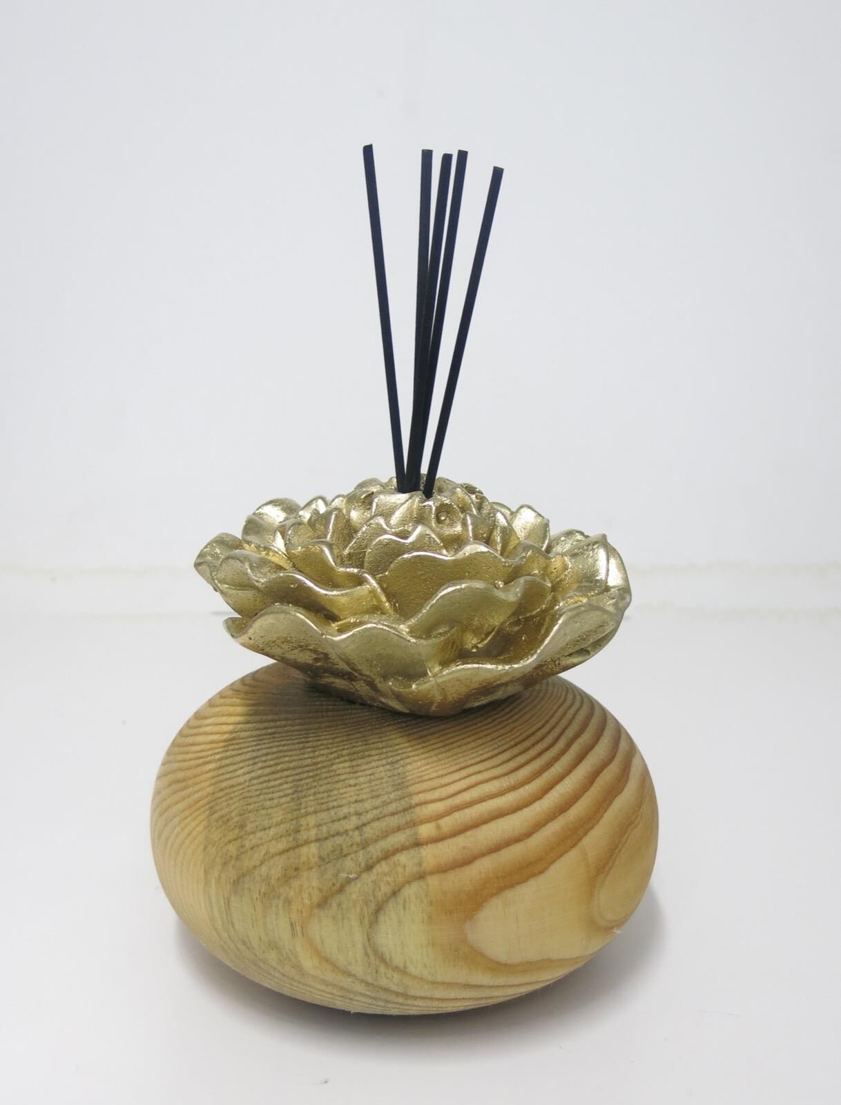 AHŞAP ÜZERİNE ÇİÇEK TAŞ KONULARAK BAMBU ÇUBUKLAR YERLEŞTİRİLİR.