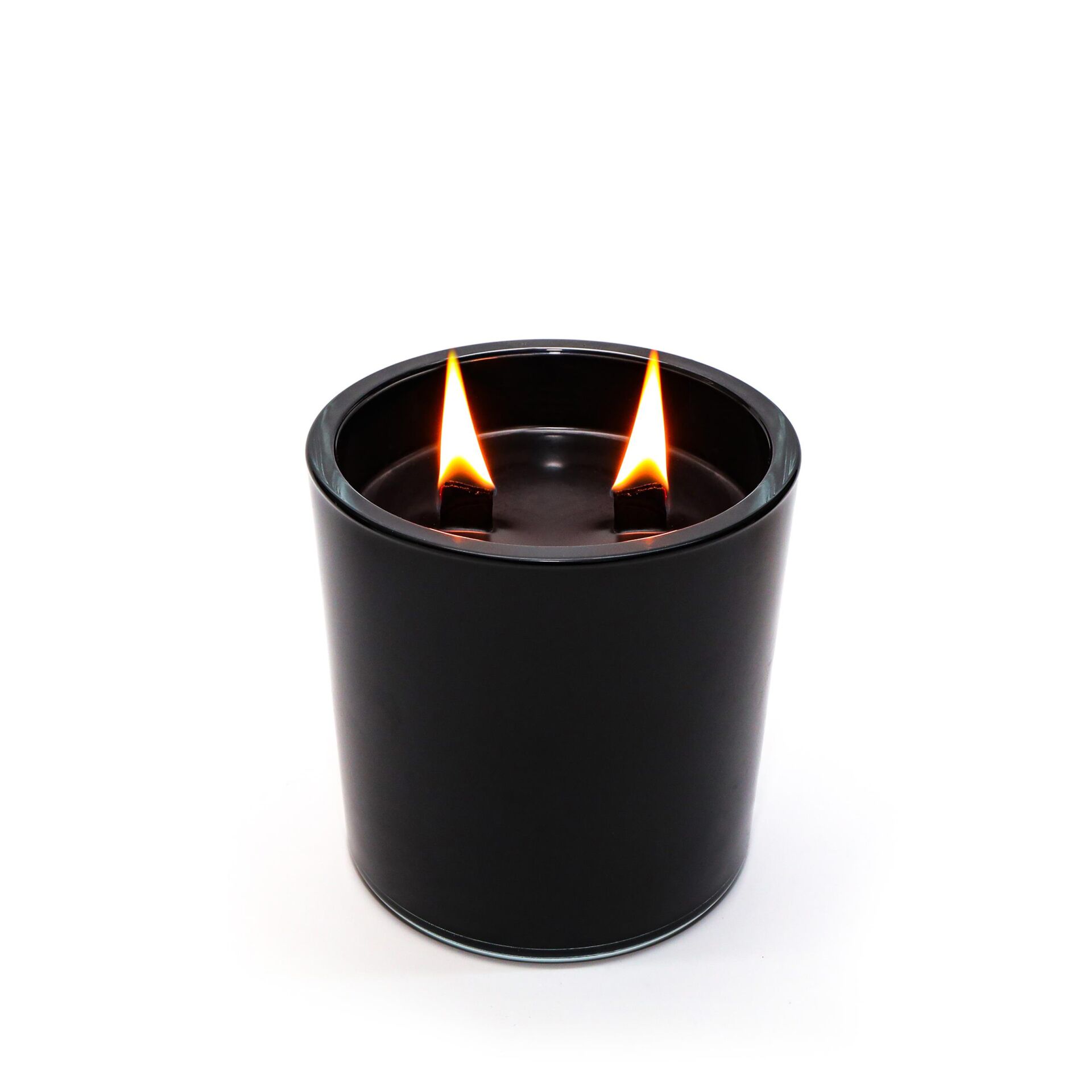 XL Siyah Parlak Cam Ahşap Fitilli Mystic Garden Kokulu Vegan Mum